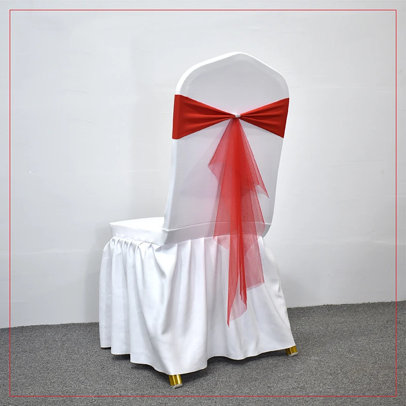25pcs Elastic Yarn Silk Chair Sashes Bow Ties Wedding Decoration Stretch Organz Chair Bands for Banquet Party Event Chair Decor