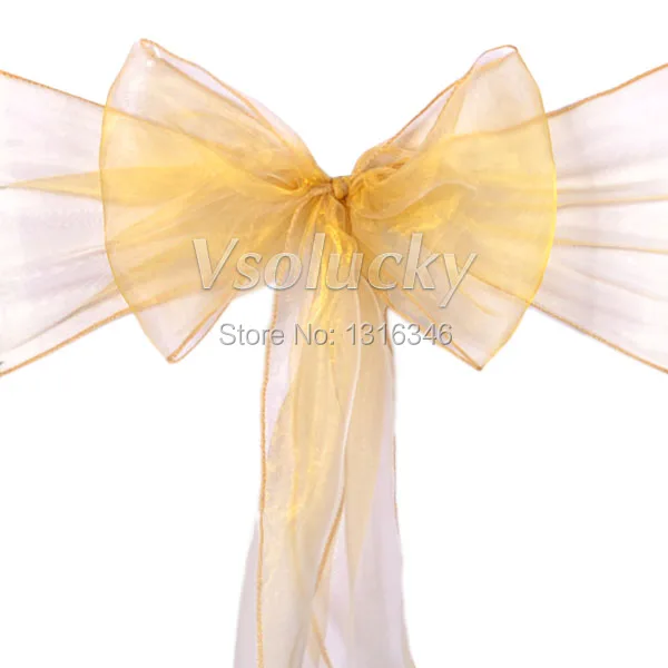 25pcs/lot Gold Sheer Organza Chair Sashes Bow Cover Wedding party Xmas Birthday Shower Decoration