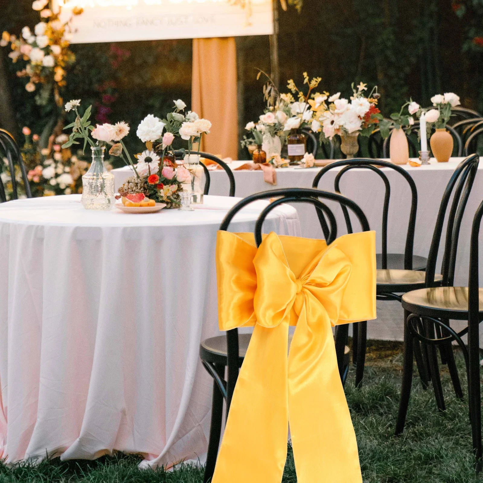 Wide Application: The chair bow ties are suitable for various occasions. Suitable for weddings, parties, festivals and more. They can enhance the overall aesthetics of the venue, decorative elements to various occasions
