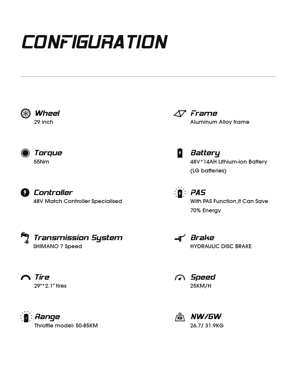 • Max Speed: <25km/h