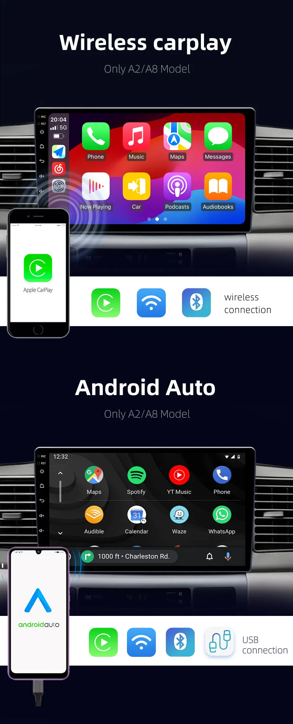 Built-in bluetooth 5.0, support bluetooth phone, bluetooth music, address book.
