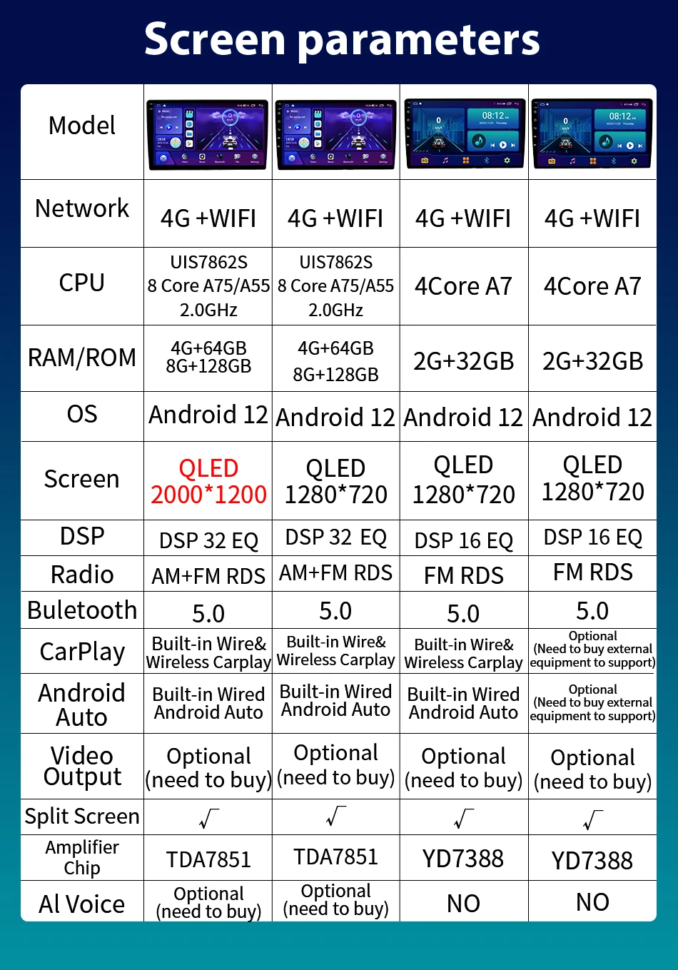 - Resolution: QLED1280*720P