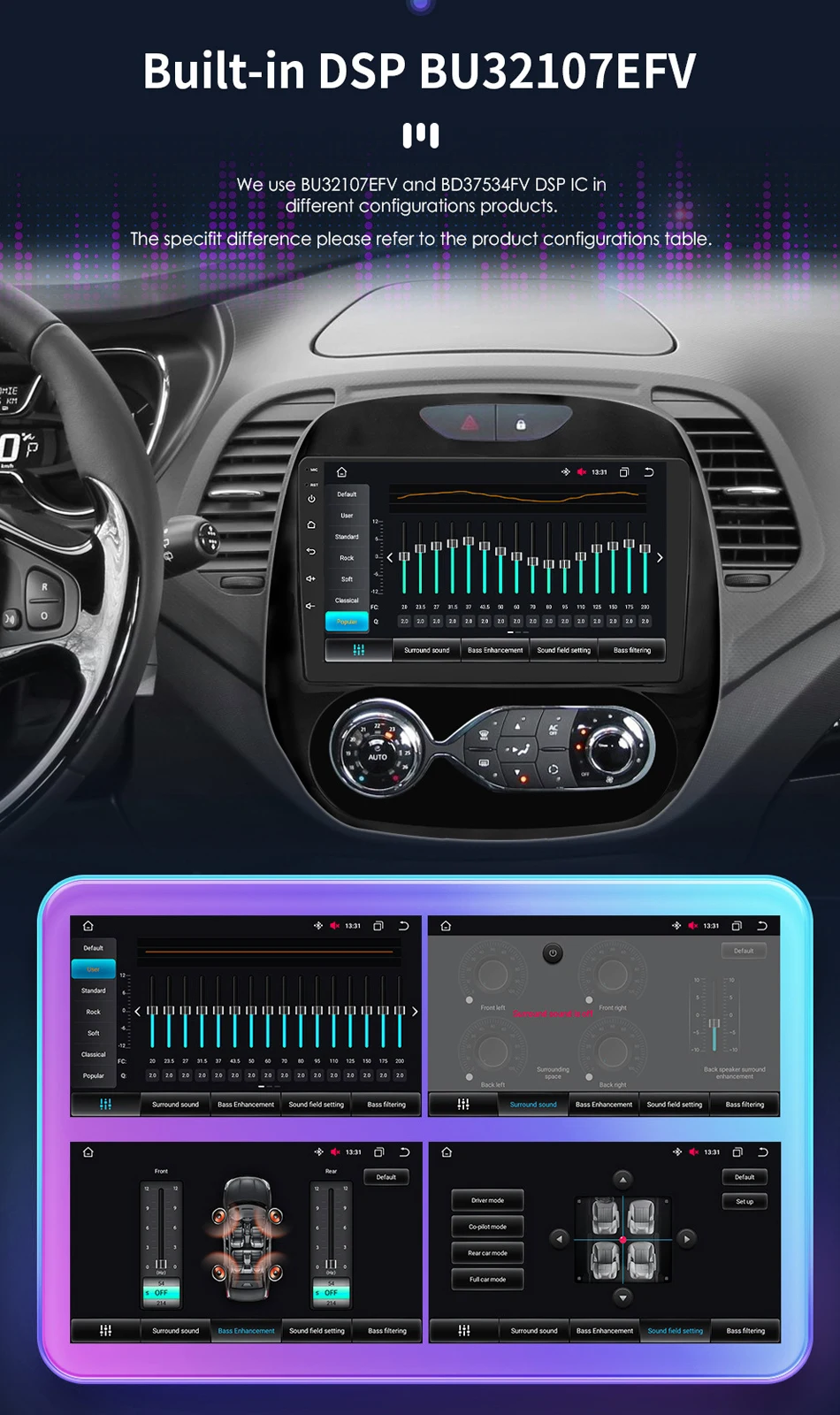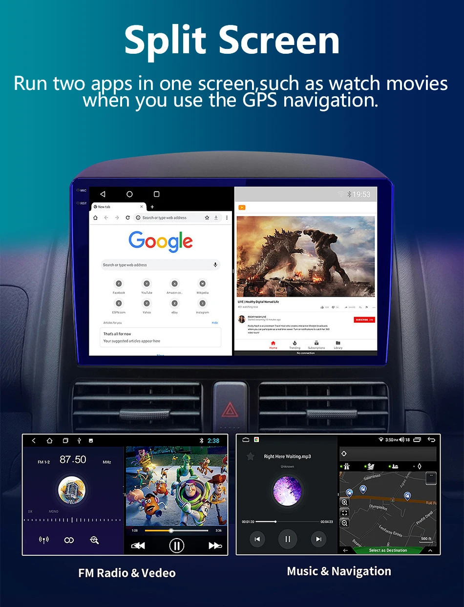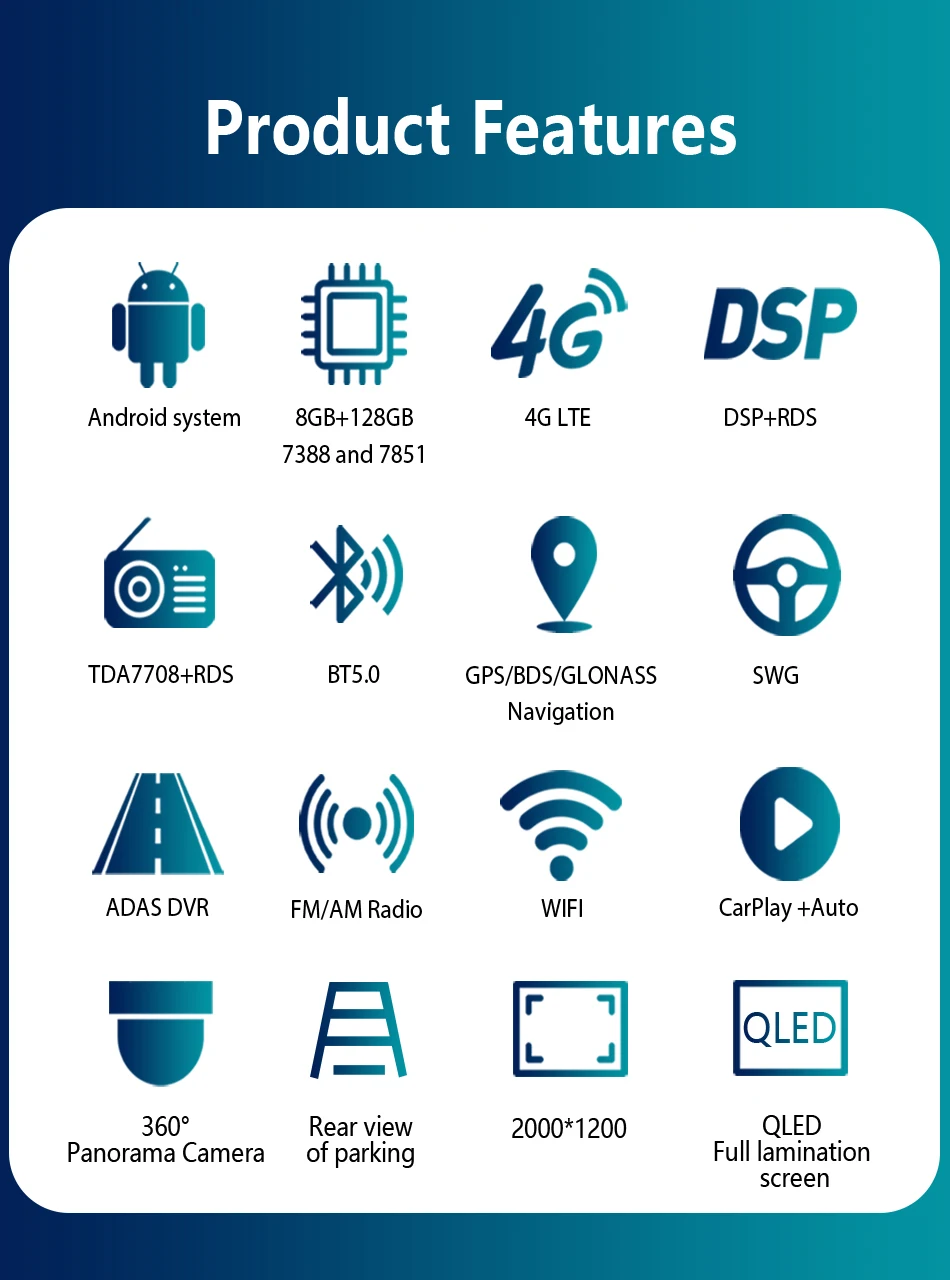- Special Features: Built-in Gps,Charger,Mobile Phone,MP3 players,Voice Control,dsp,CarPlay,android auto,Reversing Input,Split Screen