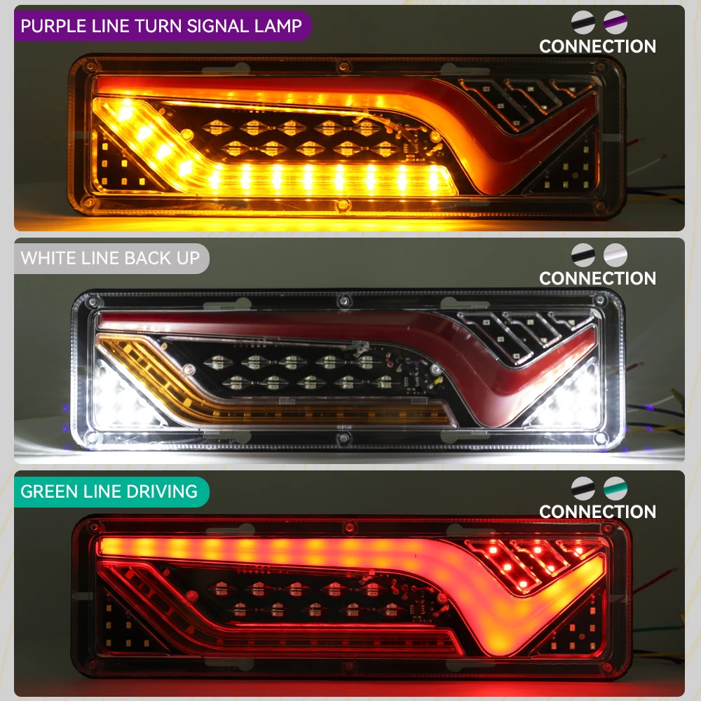 2PCS 12V-24V LED Truck Tail Light Rear Lights Turn Signal Brake Reverse Signal Lamp Trailer Lorry Bus Camper Caravan RV Tractor