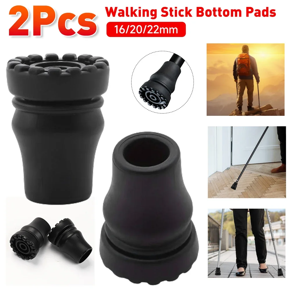 2Pcs Walking Stick Bottom Pads 16/20/22mm Trekking Pole Tip Protector Non-Slip Cane Tip Replacement for Climbing Hiking