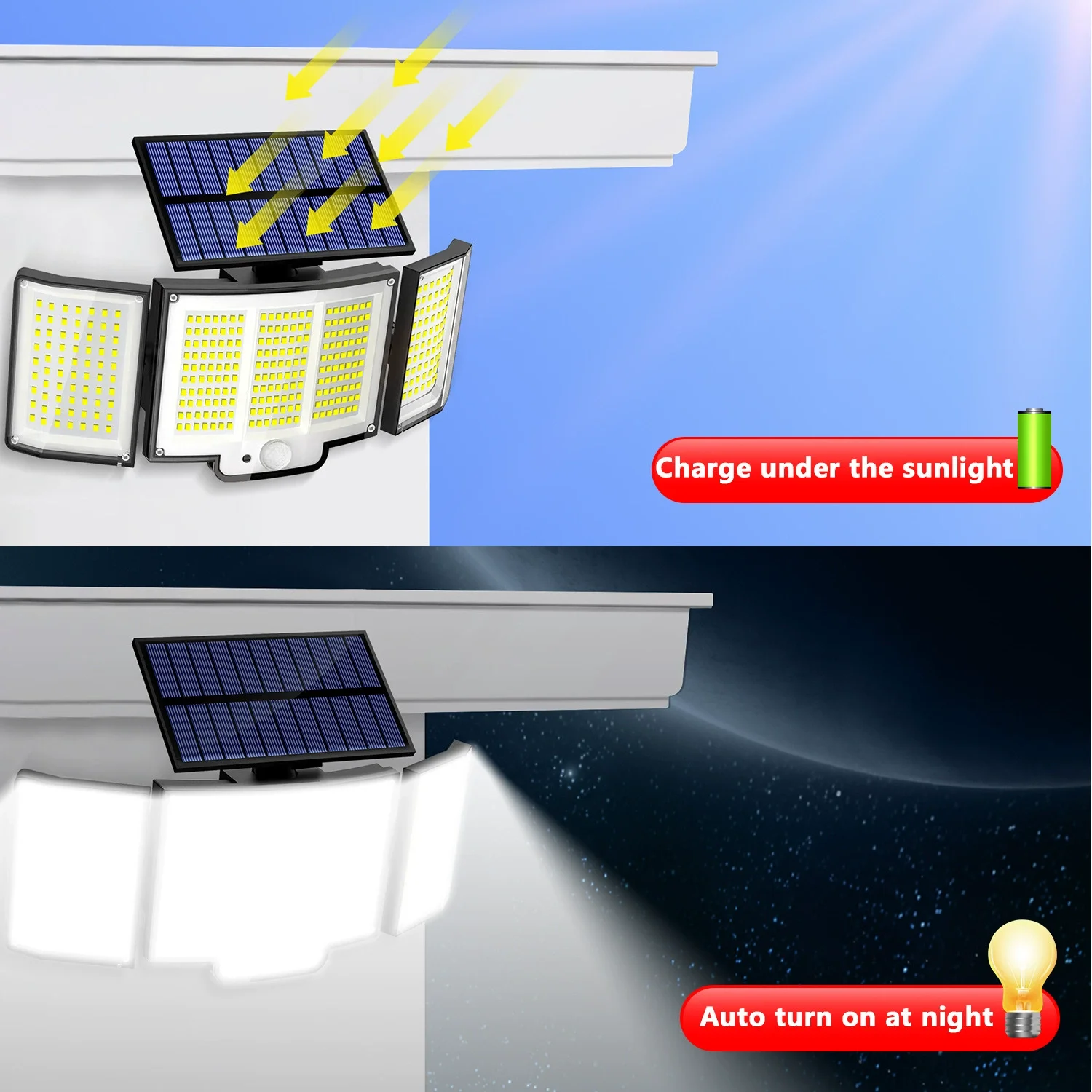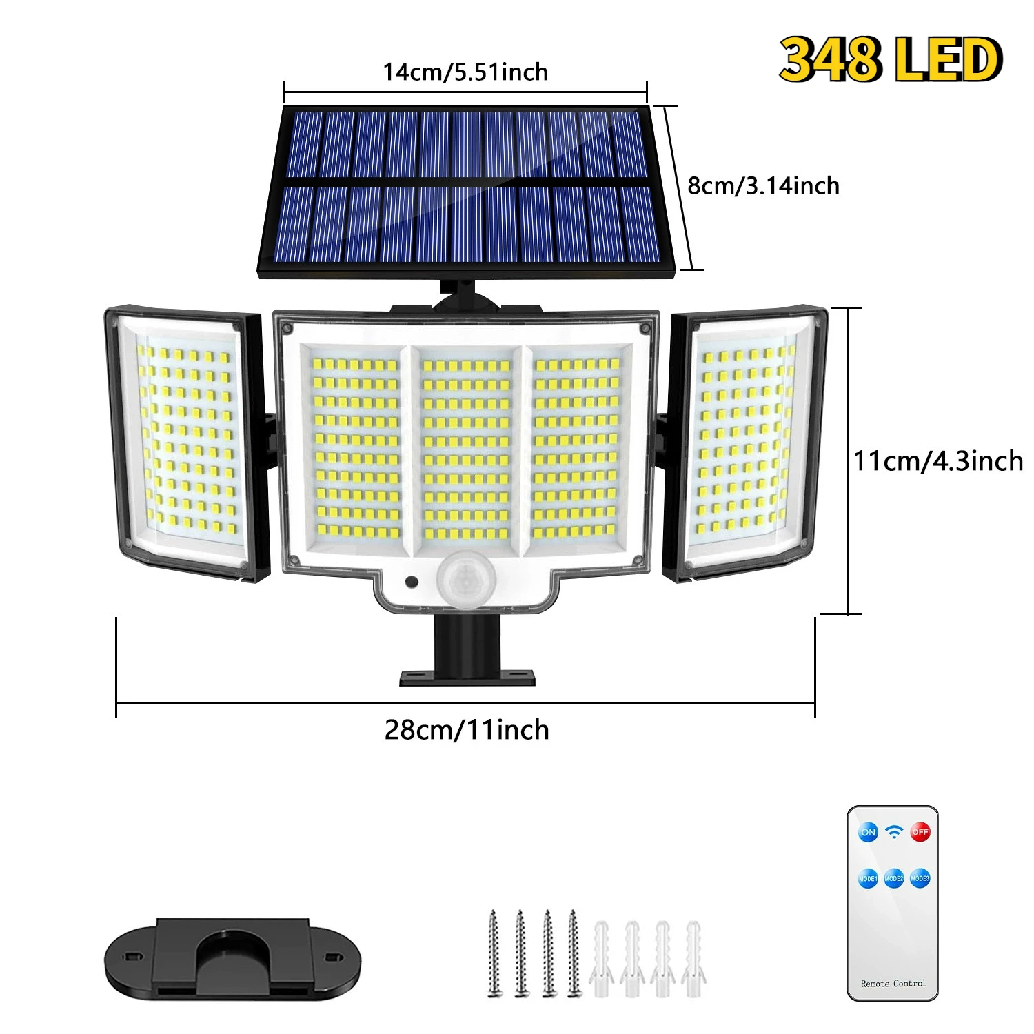 • Features: 348 LED Solar Light Motion Sensor Security Light 3 Lighting Modes
