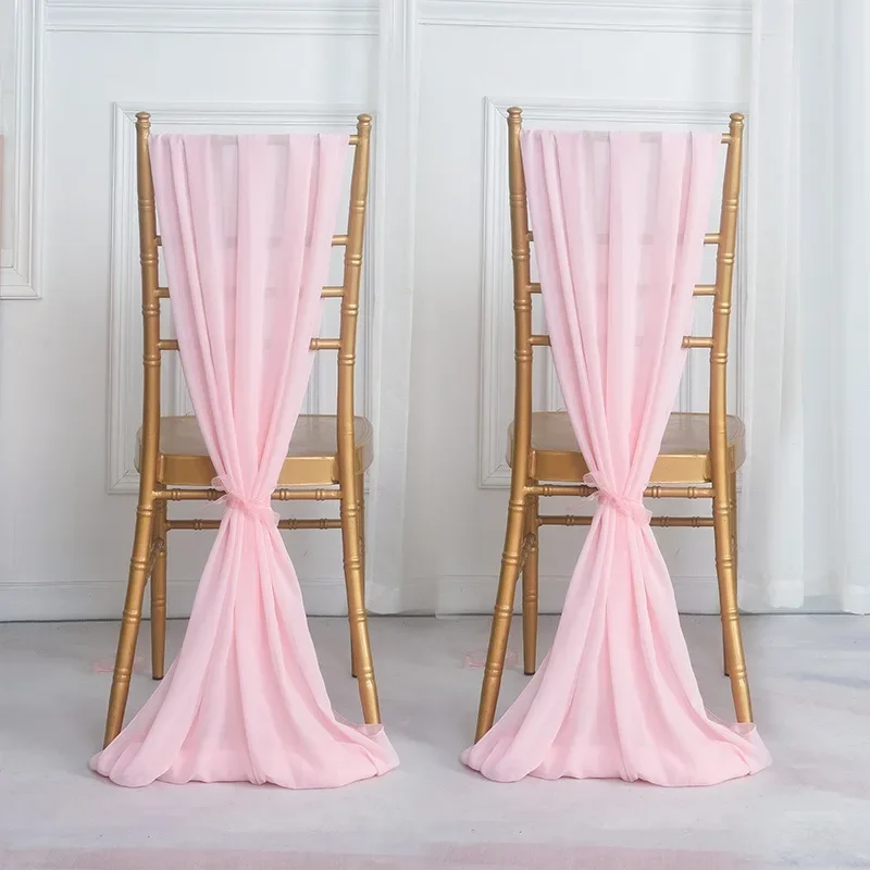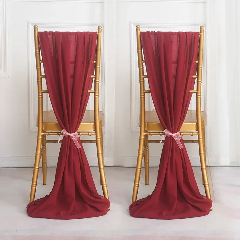 2PCS Chiffon Chair Sash Mariage Chair Cover Decoration Chiffon Fabric Chair Sashes Wedding Home Party Supplies Hotel Chair Decor