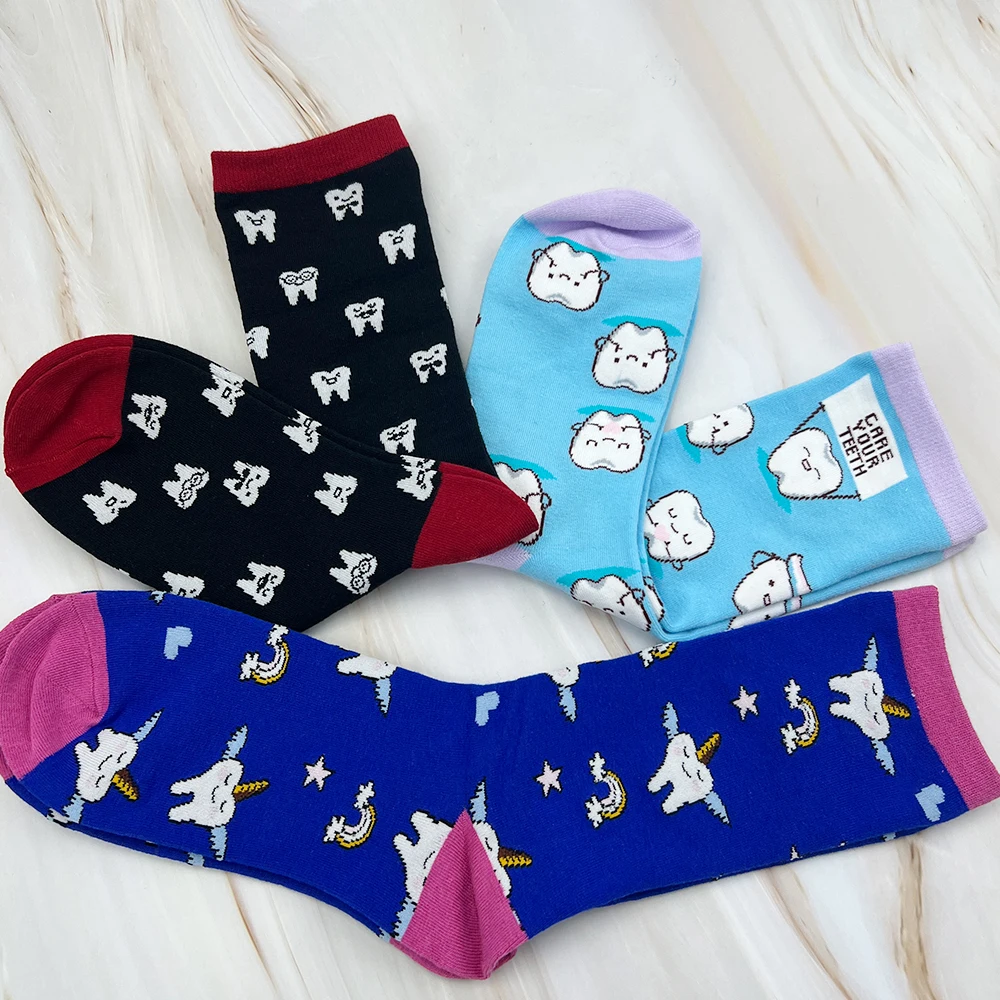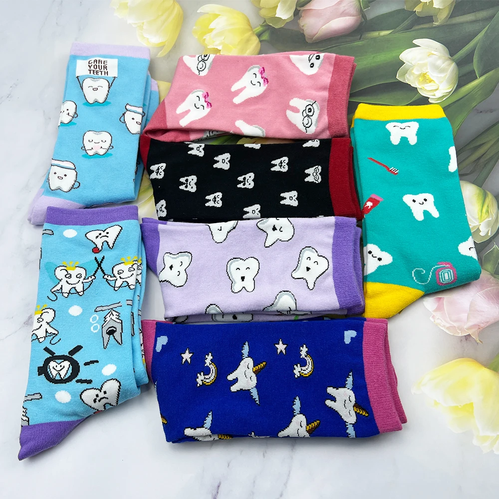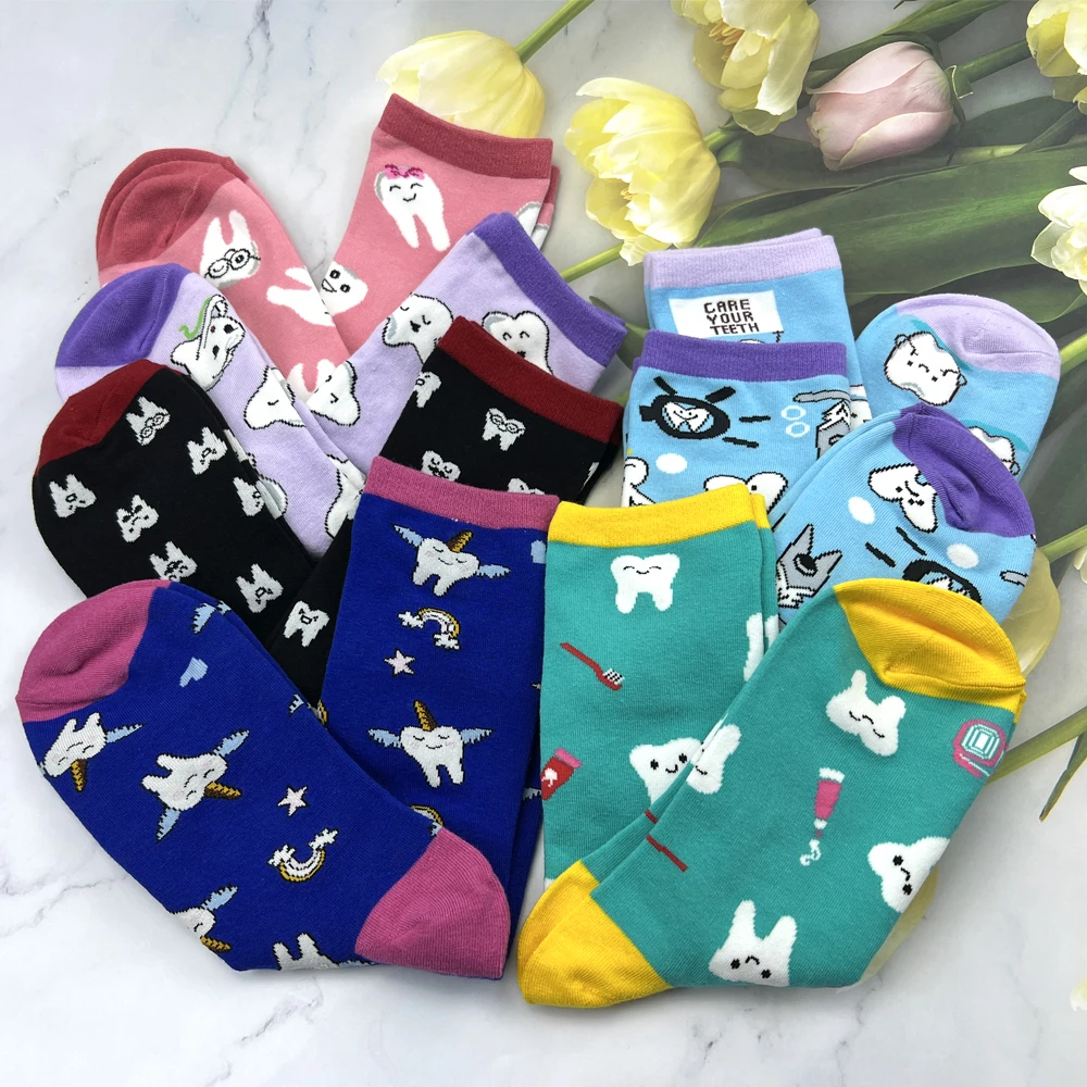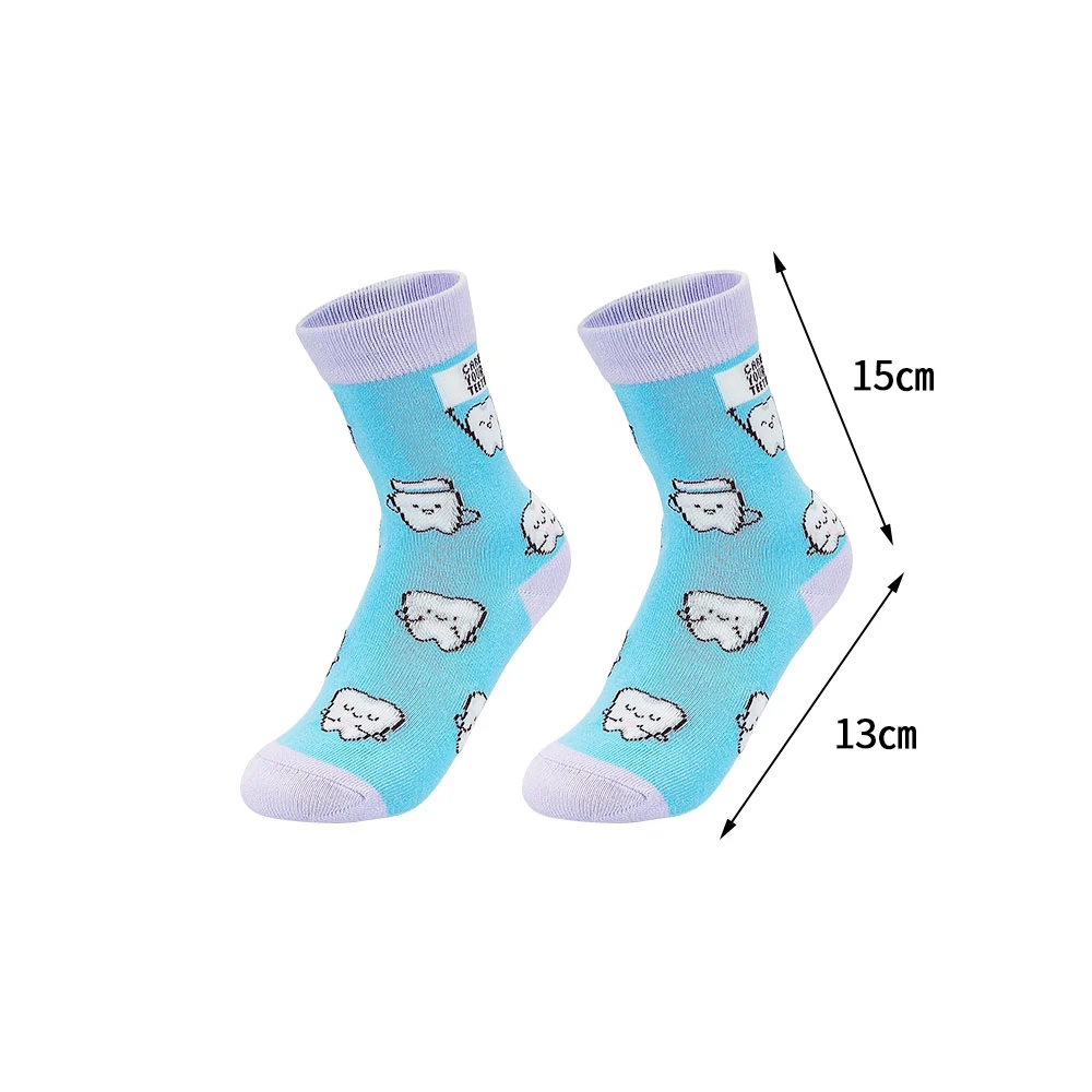 2pcs Cute Dental Tooth Teeth Pattern Socks Adult Children Funny Girl Gift Spring Stockings Polyester Soft Creative Cotton Socks