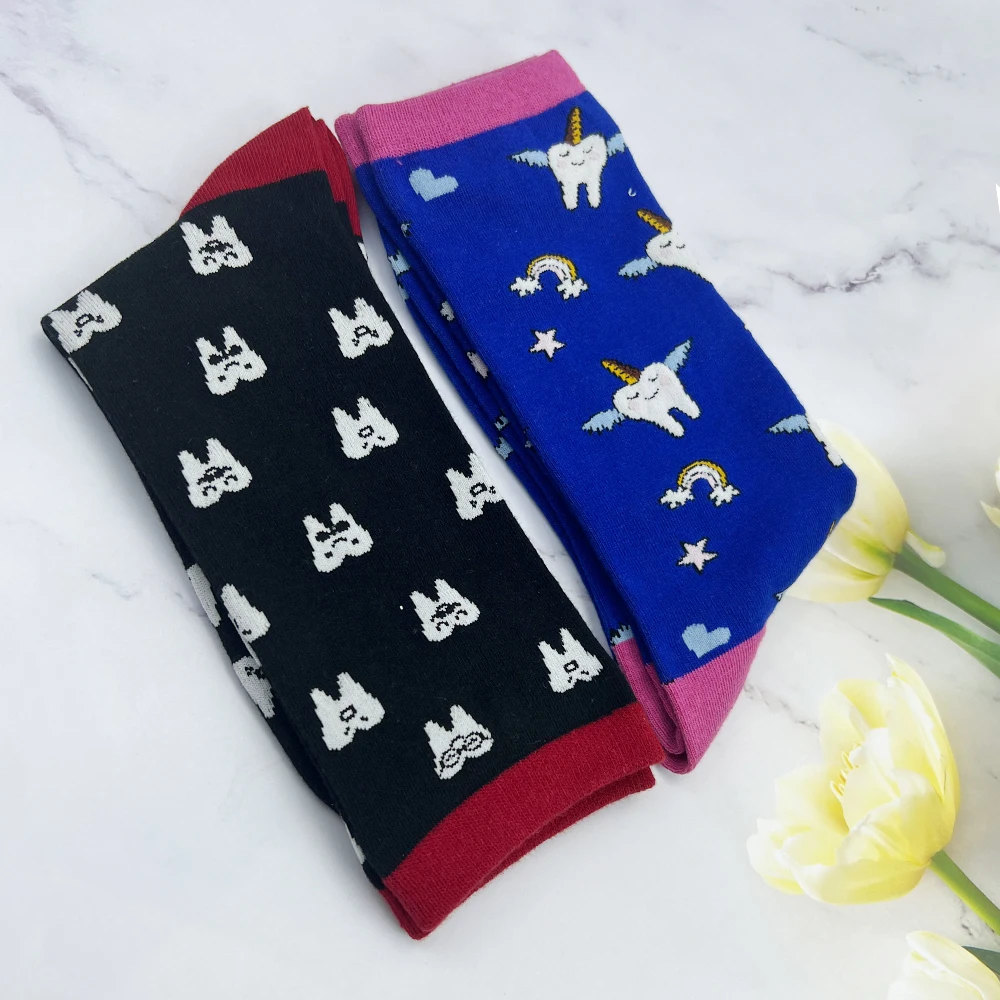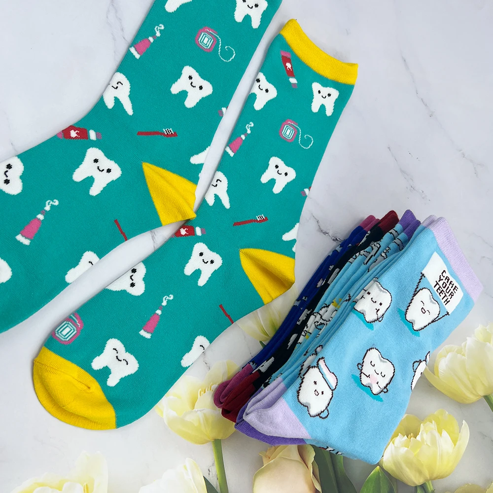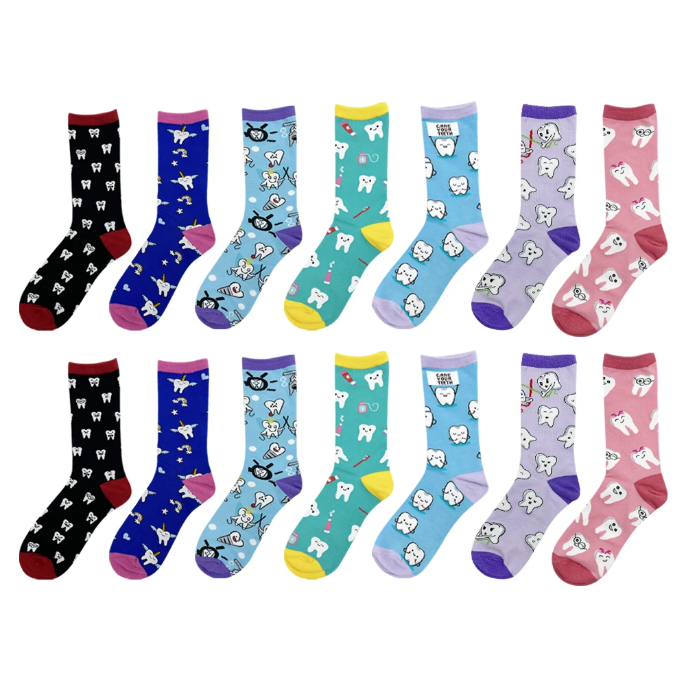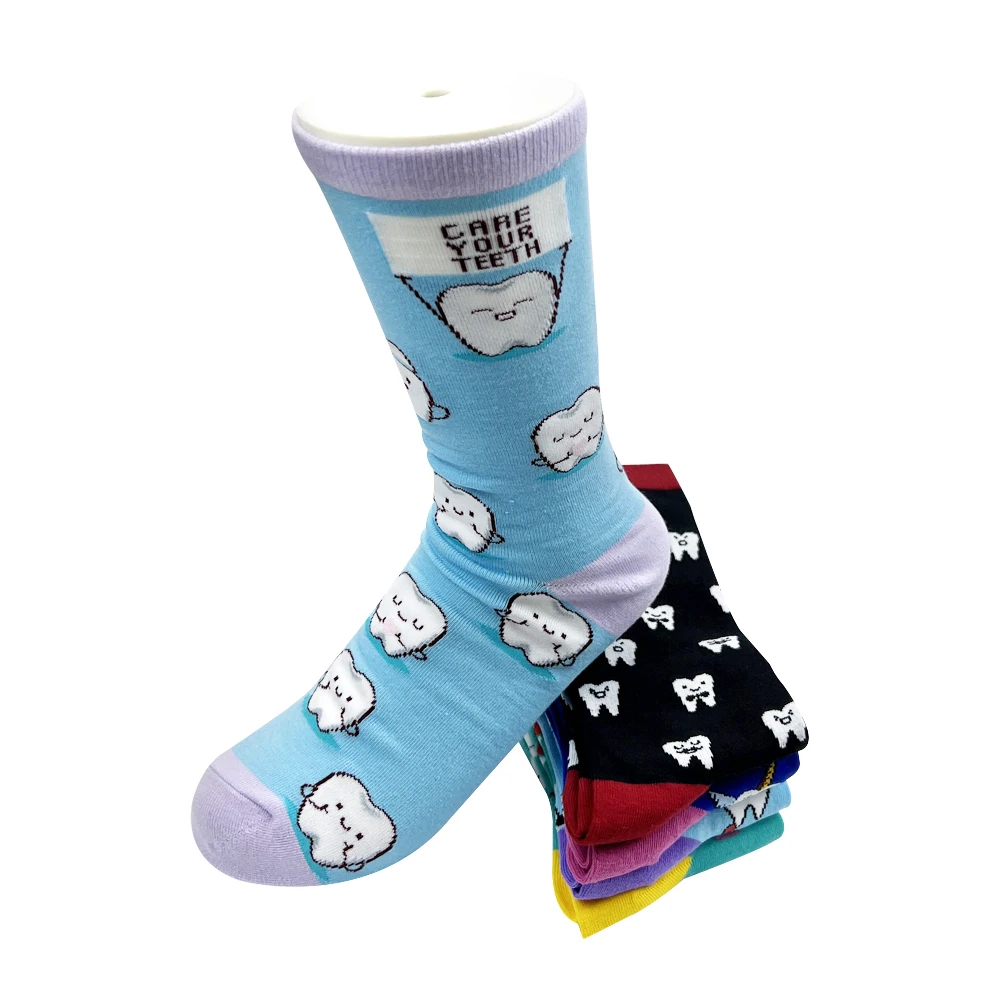 2pcs Cute Dental Tooth Teeth Pattern Socks Adult Children Funny Girl Gift Spring Stockings Polyester Soft Creative Cotton Socks