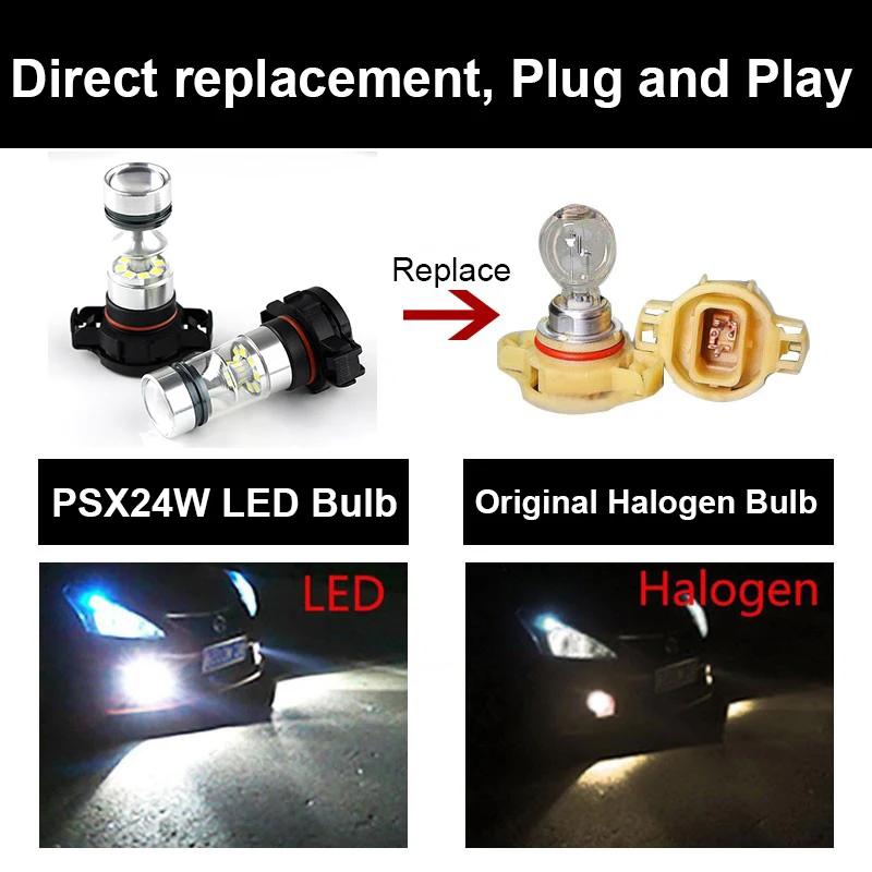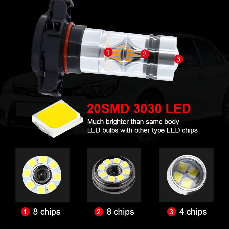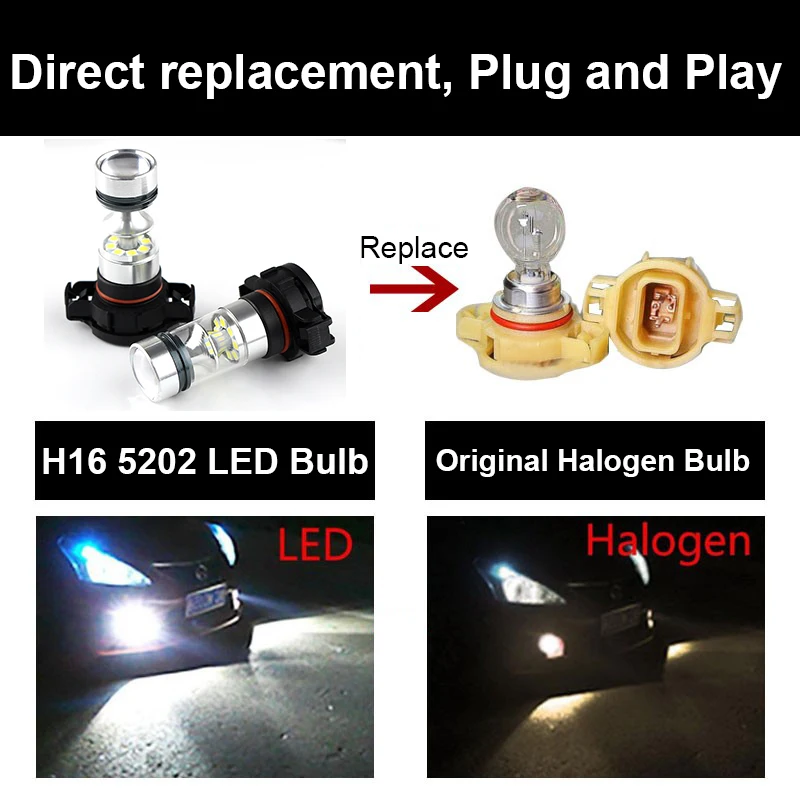2PCS For GMC Yukon 2007 2008 2009 2010-2014 Car LED Front Fog Driving Light Bulbs Lamps 5202 H16 6000K Error Free Accessories