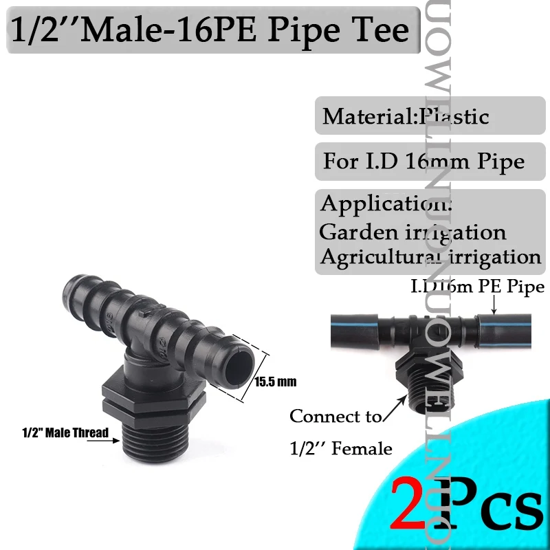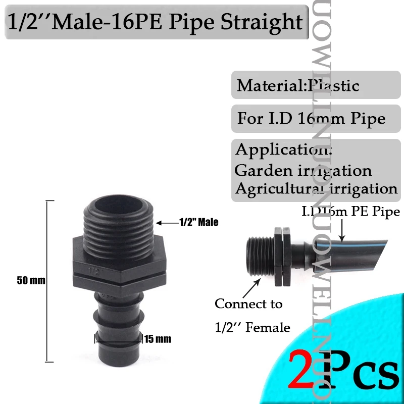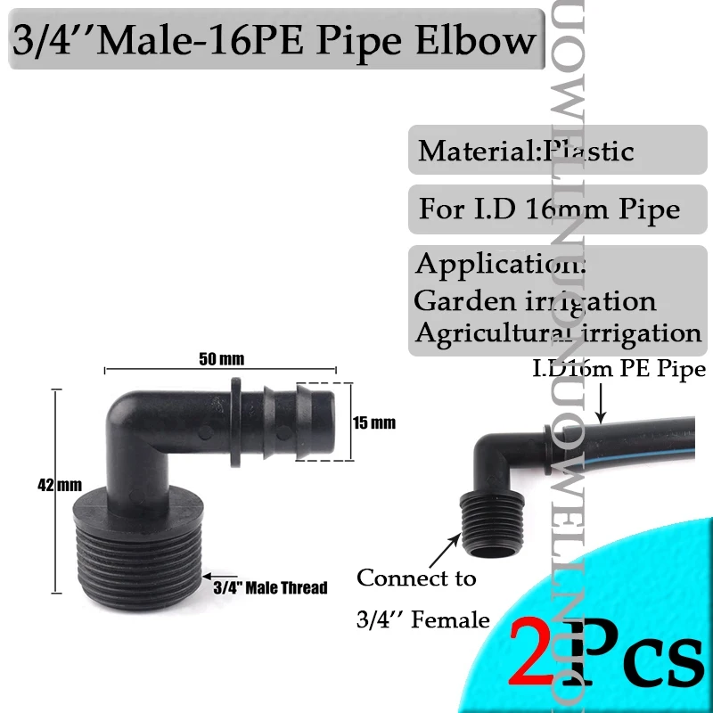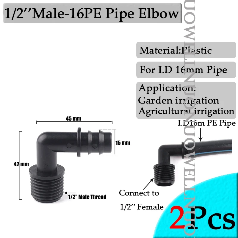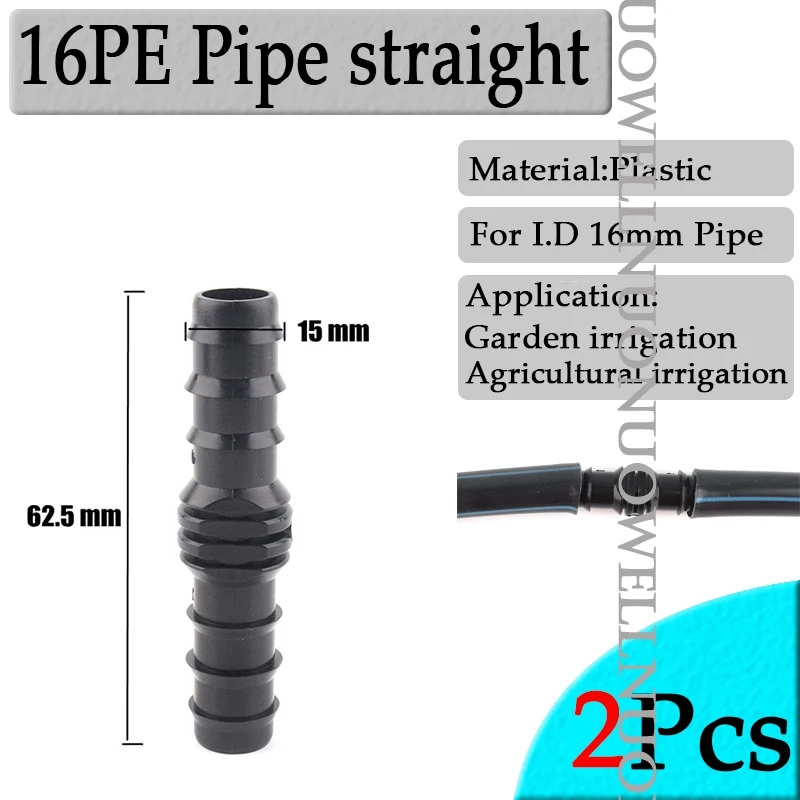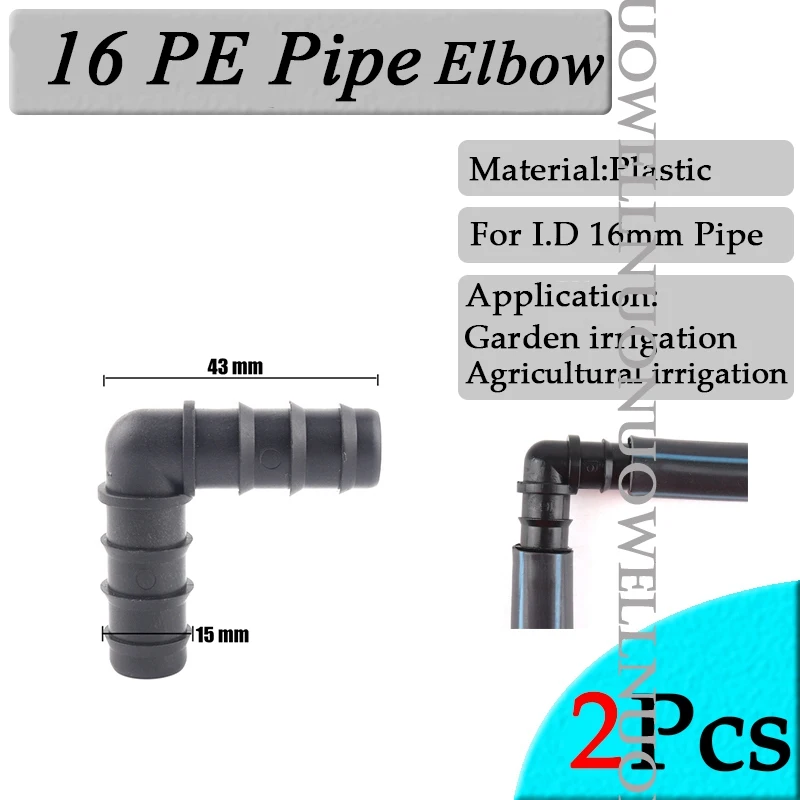 2Pcs Garden Watering Hose Connectors 16mm PE Pipe Joints Equal Elbow Straight Connector Agricultural Irrigation System Fittings