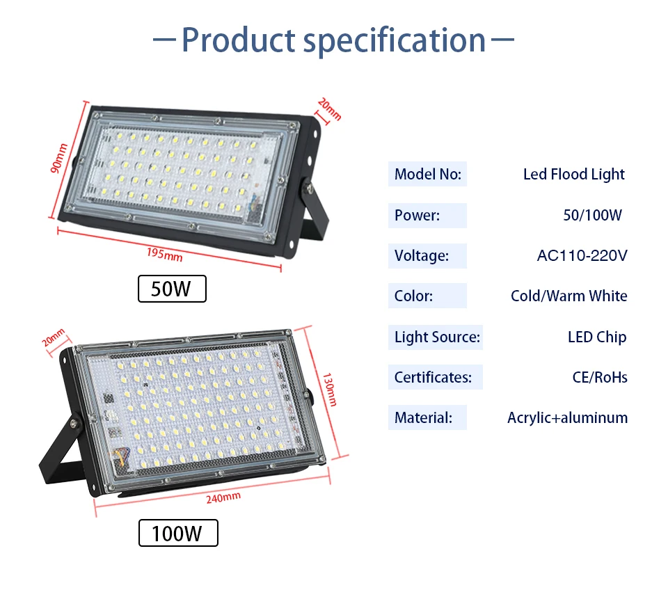 2pcs/lot Led Flood Light 50W 100W AC 110V 220V Outdoor Floodlight Spotlight IP65 Waterproof LED Street Lamp Landscape Lighting