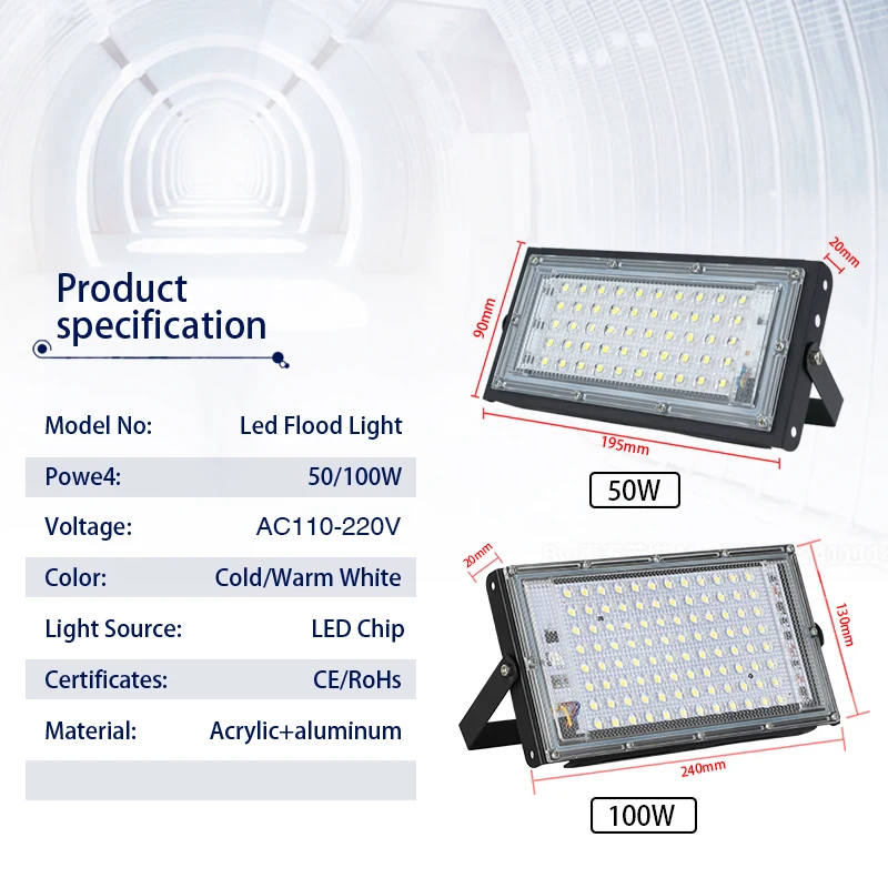 2pcs/lot Led Flood Light 50W 100W AC 110V 220V Outdoor Floodlight Spotlight IP65 Waterproof LED Street Lamp Landscape Lighting