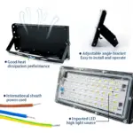 Facts: Our product is built with high quality chips.High quality ABS lampshade a solid high transmittance. Our LED Flood light is equivalent to 300W Halogen Bulb. The Floodlight also saves 80% of your energy as compared to traditional Halogen lamps. Lighten up your atmosphere with our LED Floodlight!