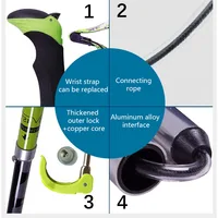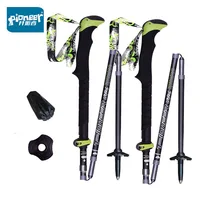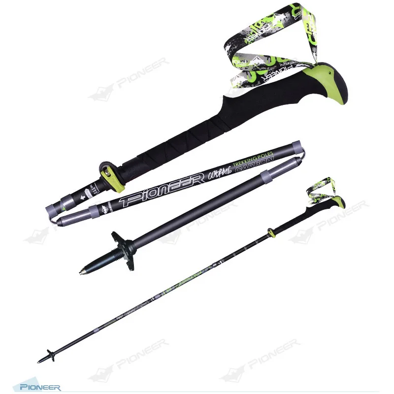2pcs PIONEER Carbon Fiber Folding Walking Stick 5 sections Adjustable Alpenstocks Outdoor Hiking Mountain-climbing