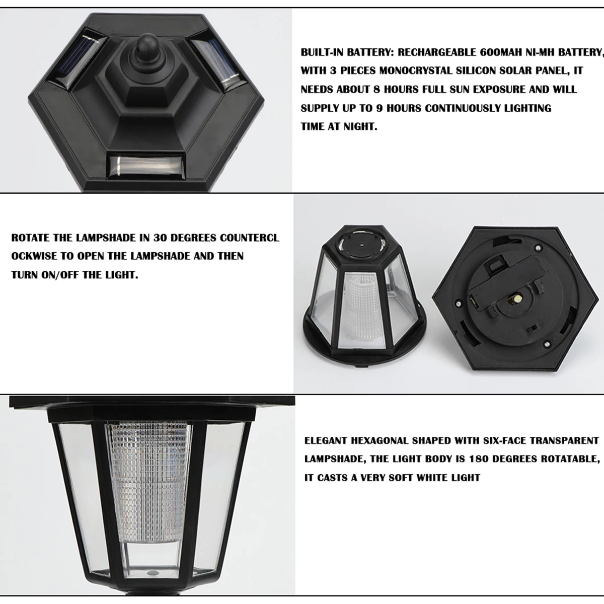 [Good Decoration] Elegant hexagonal six-sided transparent lampshade and the lamp body rotates 180 degrees cast a very soft light, ideal for outdoor fences, garden paths, landscapes, swimming pools, etc.