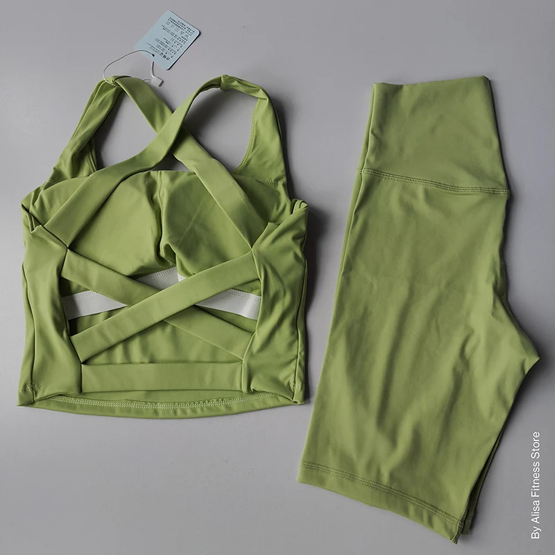 2PCS Women Yoga Set Workout Sports Bra Set Sportswear Gym Clothing Fitness Long Sleeve Crop Top High Waist Shorts Sports Suits