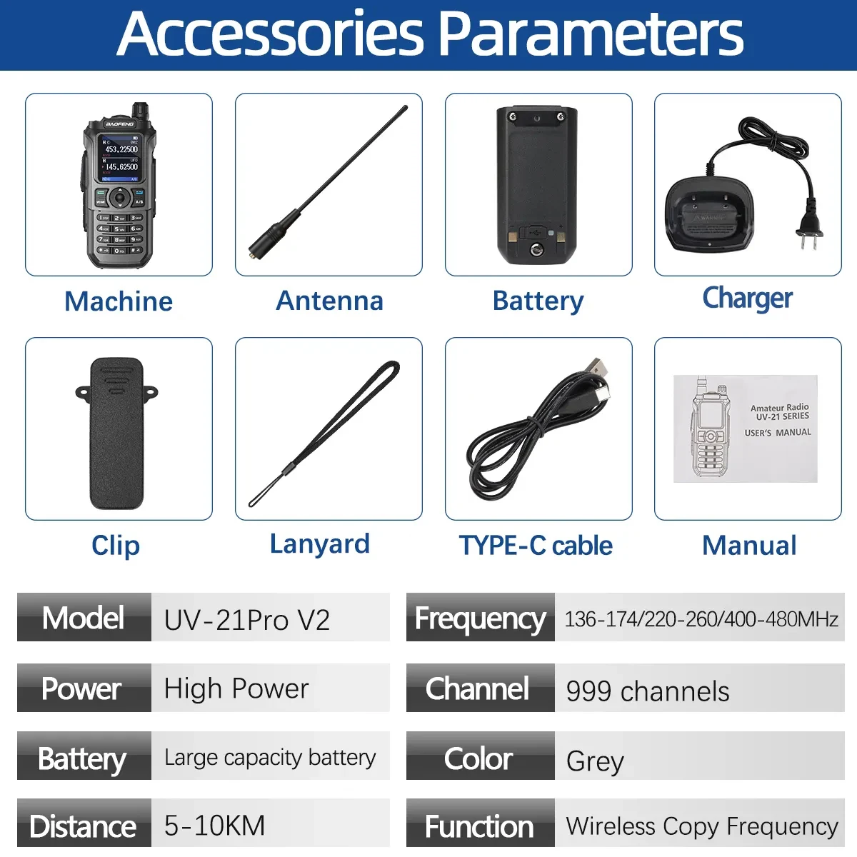 Press the menu button to enter the“FQSCAN”interface. Press Menu again and the UV-21 Pro V2 will search for another radio transmission frequency and privacy code. Finally press the menu to store the frequency. Two walkie-talkies can communicate normally. Communication is unobstructed, and traditional writing frequency is rejected.