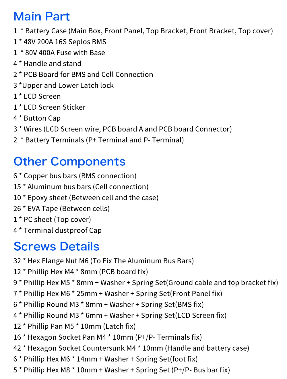 1 * Battery Case (Bottom case, Front Panel, Top Bracket, Front Bracket, Top cover)