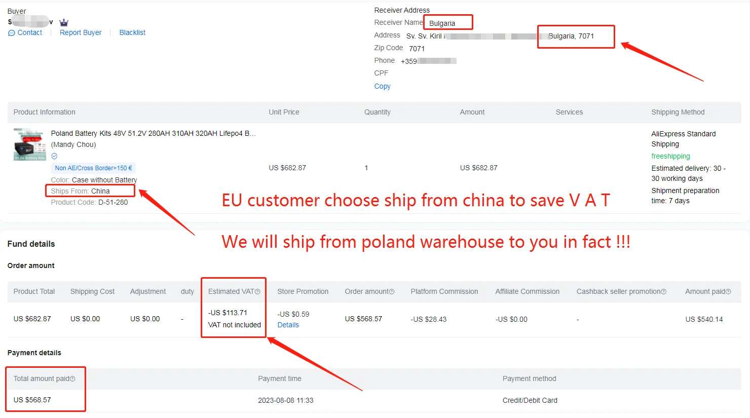 EU cutomer can choose ship from china to save VAT when you place an order !