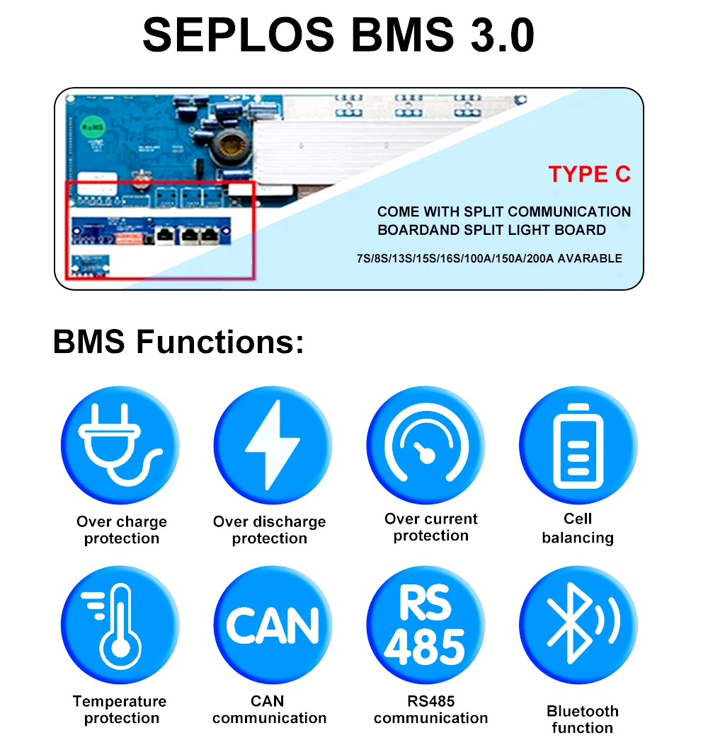 Without Battery only battery case with smart 3.0 Seplos BMS