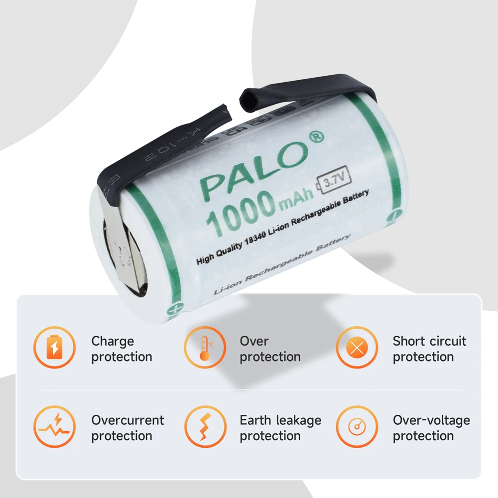 3.7V 18340 18350 Rechargeable Lithium ion Battery 18350 Batteries With Weld Tap for Flashlights Doorbells Camera Electric tools