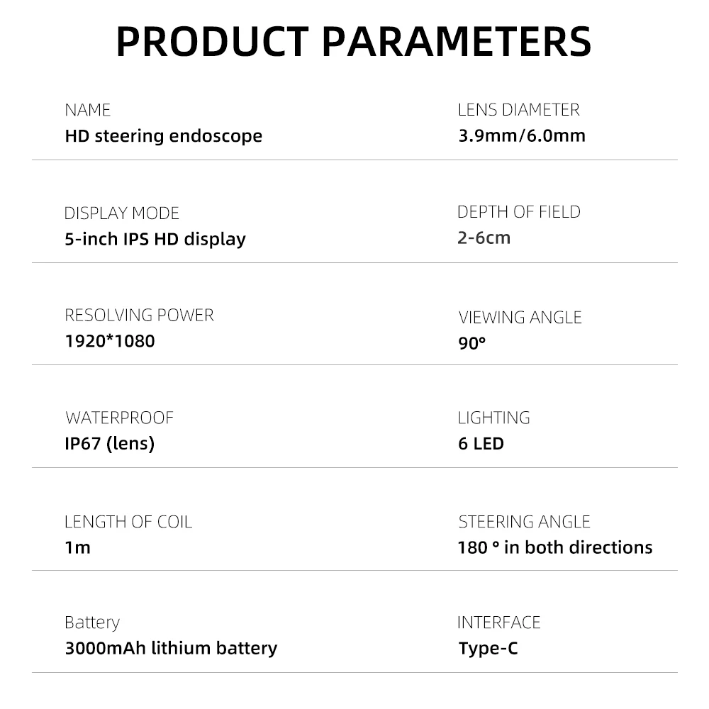 Note: that the 3.9mm side view mirror without hook magnet has three accessories