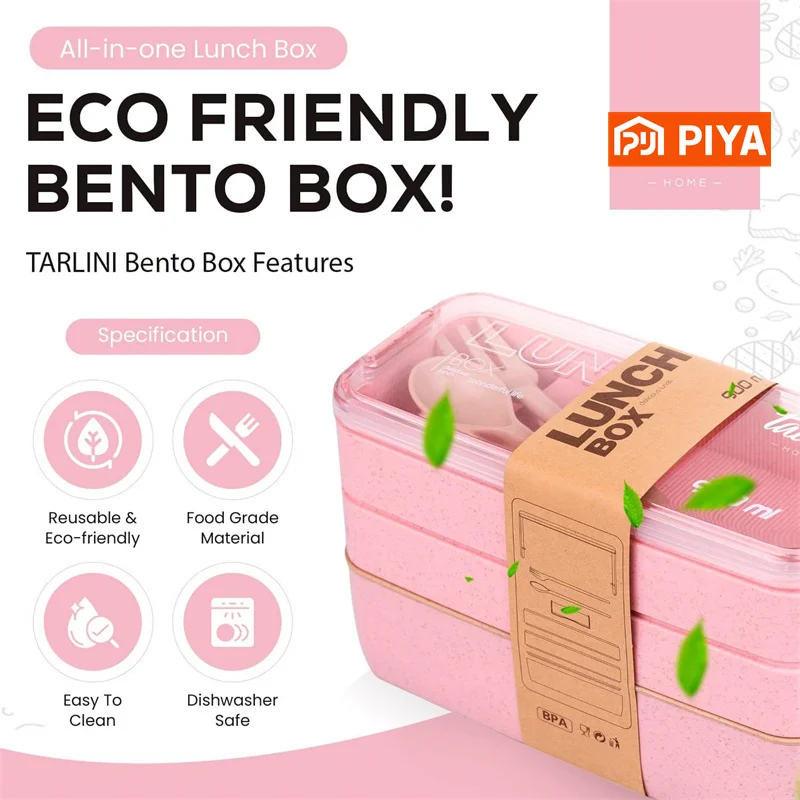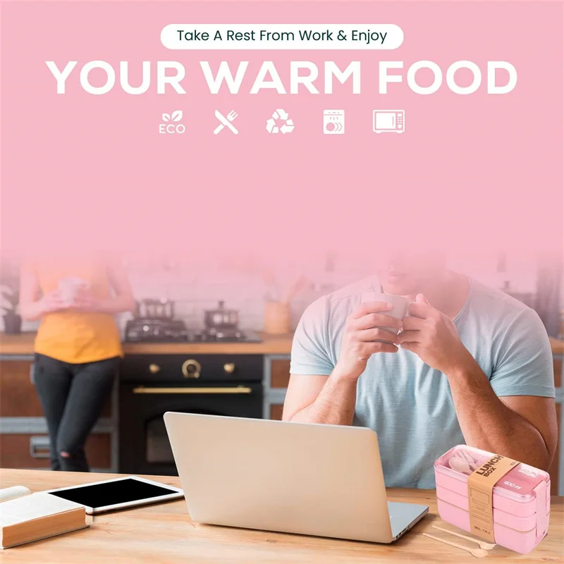 3 Pack smooth and wheat fiber microwave lunch box, a fork and a spoon. Plus – fast delivery, flexible return policy.