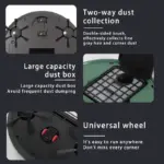 9. Longer endurance, with a 1200mAh battery capacity. Large capacity battery with 90 minutes of battery life for longer endurance, smooth and unobstructed travel throughout the house, with dirt everywhere to hide