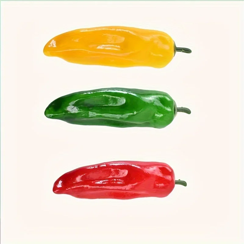 3-Piece Simulated Peppers Decor Set, Artificial Vegetable Models for Home Decor, Realistic Fake Chilies, Lifelike Decorative