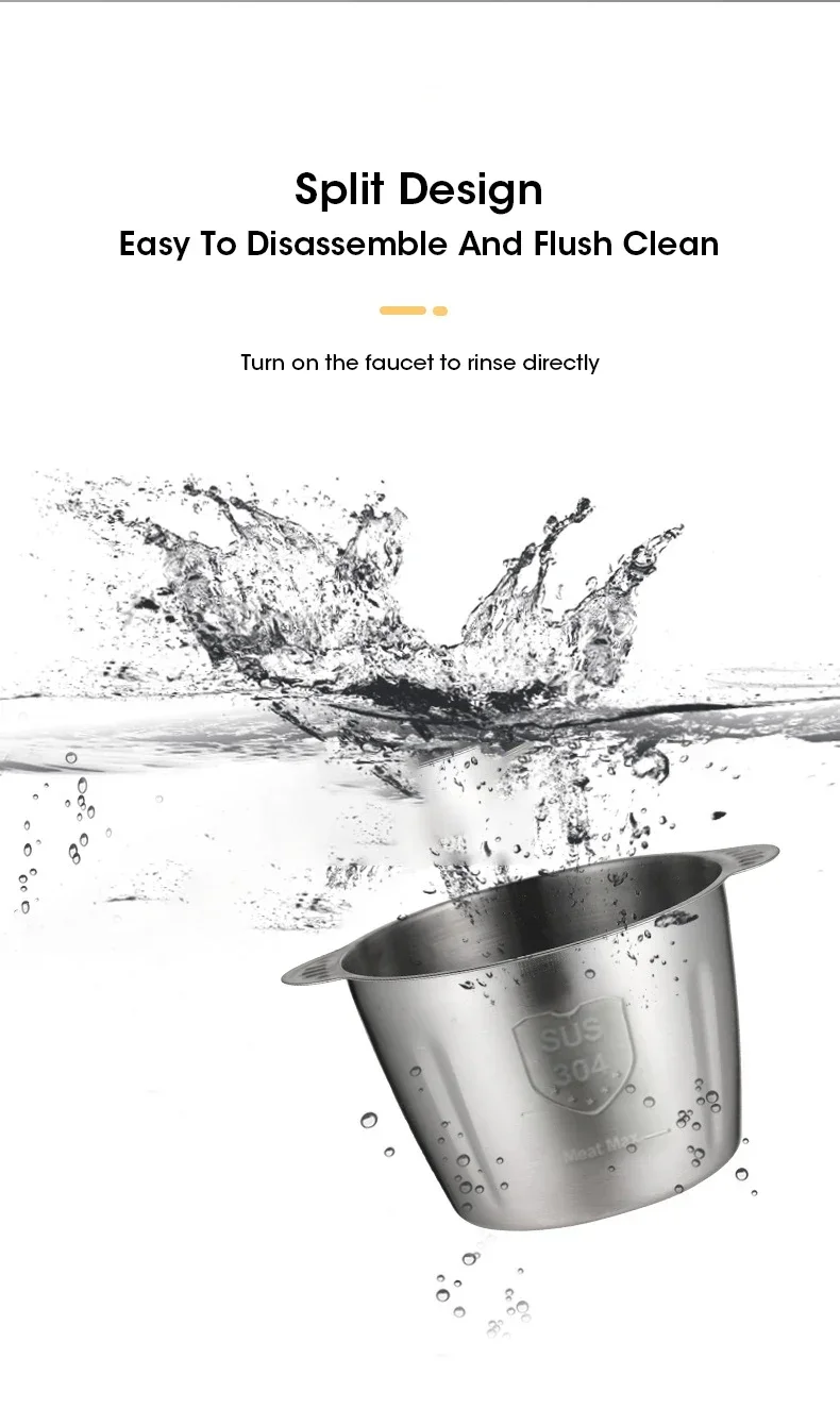 Electric Meat Grinder Stainless Steel Food Grinder Household Kitchen Meat and Vegetable Slicer 3-speed Adjustable Blender