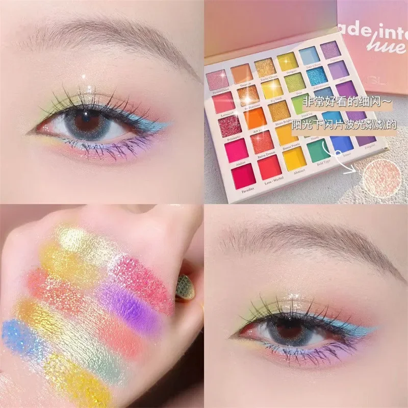 • texture: Pearlescent, powdery, matte, polarized glitter