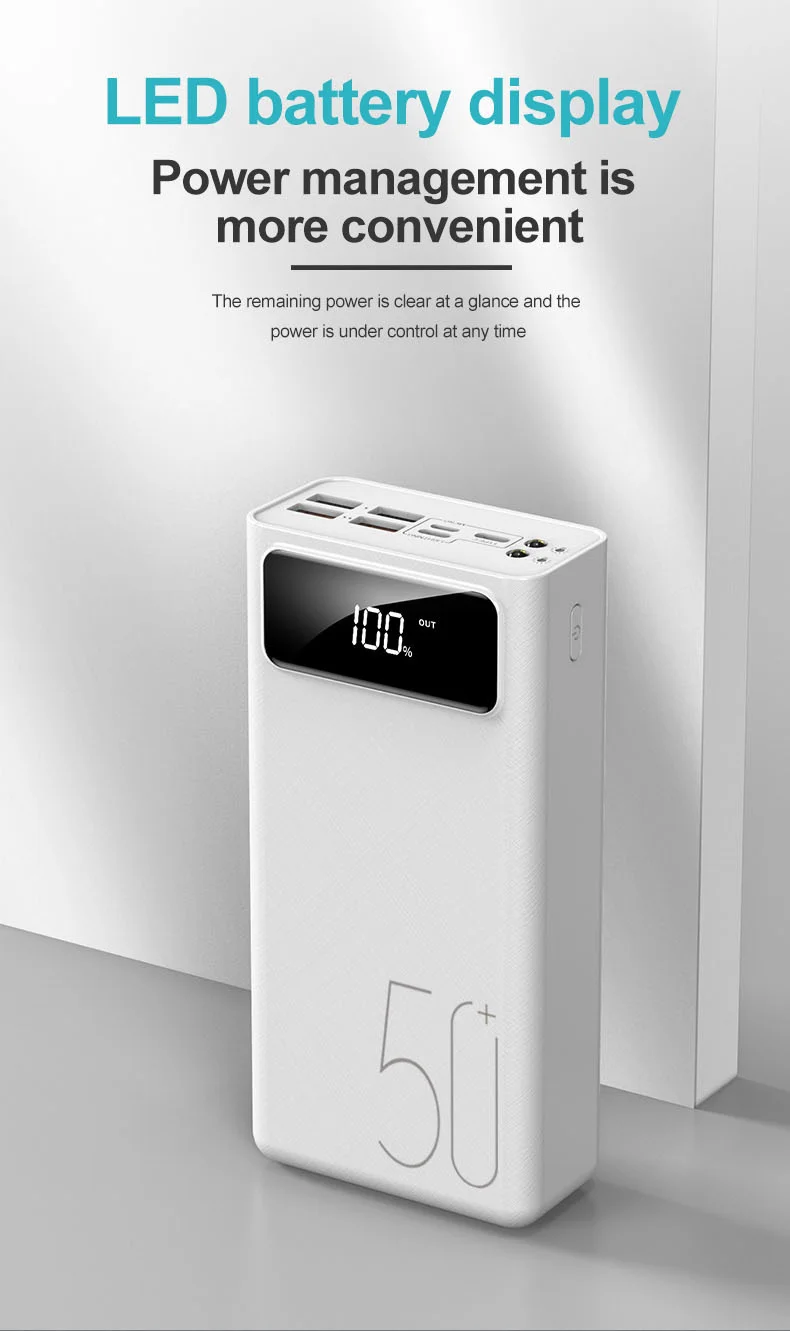 30000mAh/40000mAh Power Bank Micro USB QC Fast Charging Outdoor Camping Powerbank LED Display Portable External Battery Charger