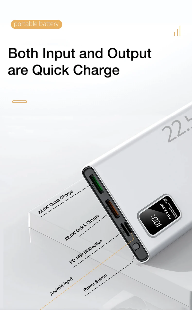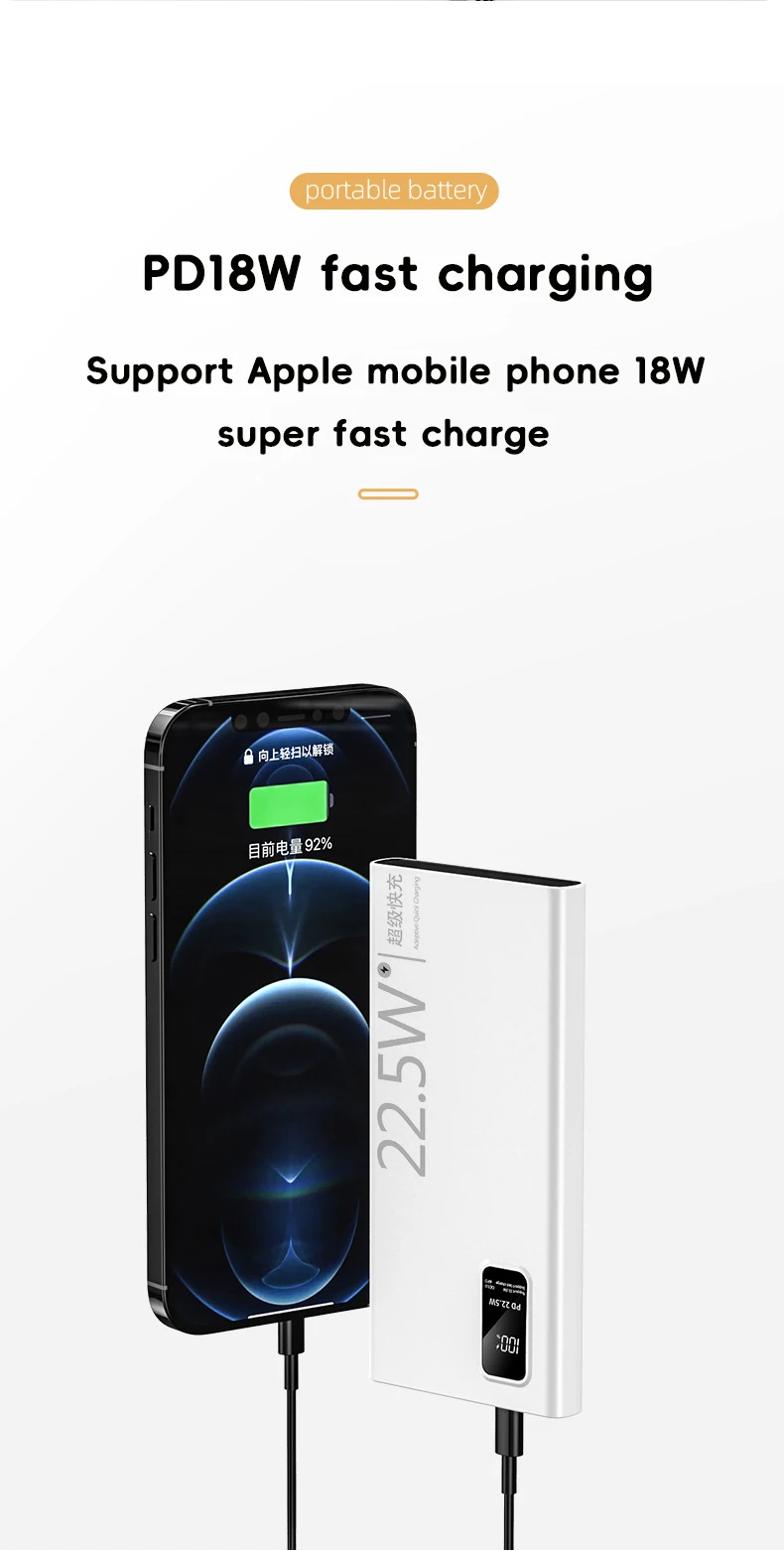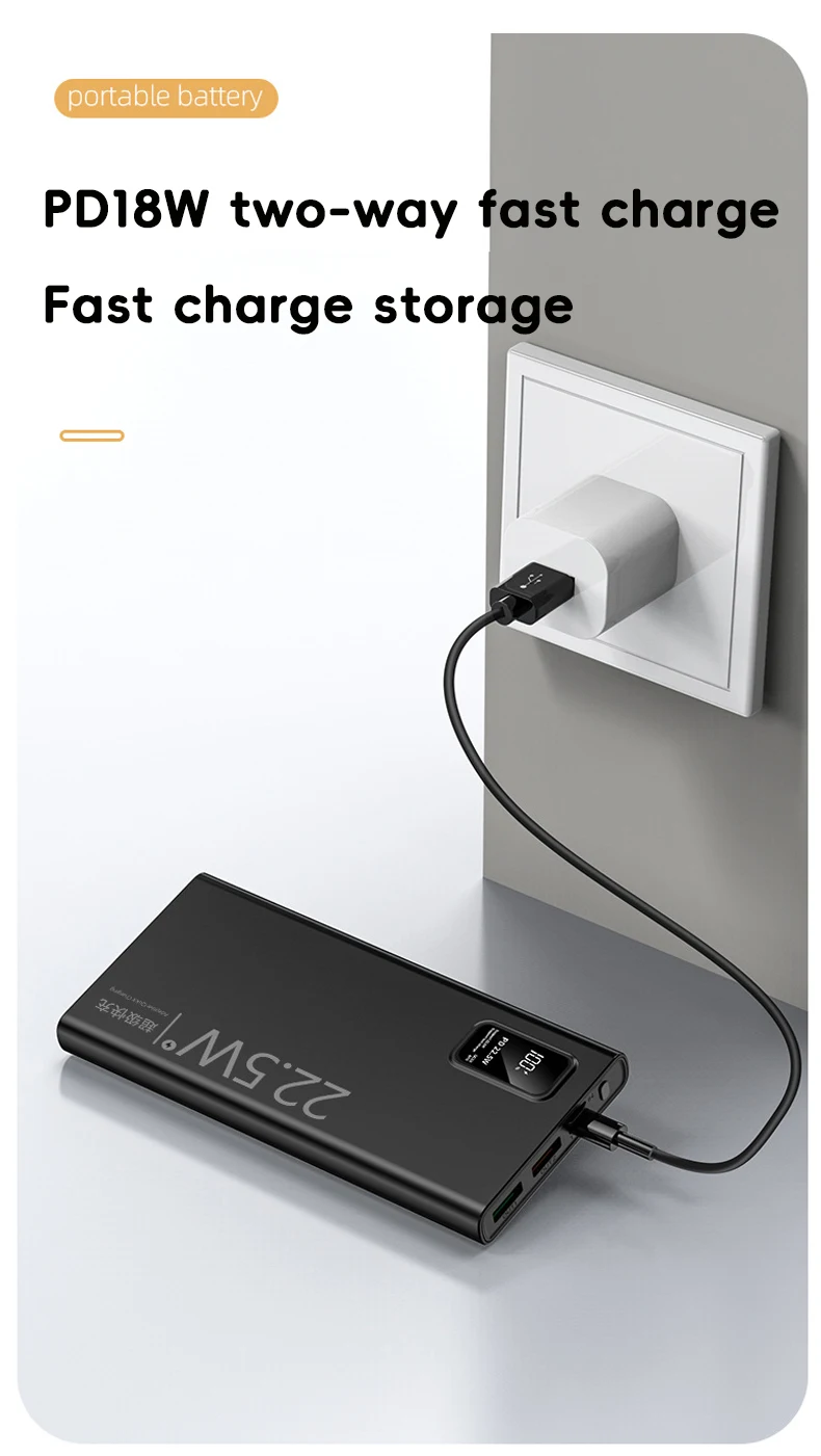 30000mAh 20000mAh Large capacity Portable Power Bank 10000mah 22.5W USB Type-C PD Fast Charging External Auxiliary Battery Powerbank for iPhone 16 15 14 13 Samsung Xiaomi HUAWEI