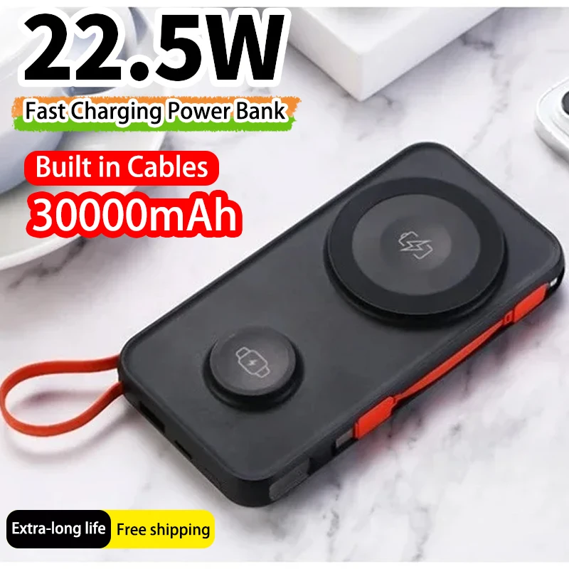 30000mAh Magnetic Wireless Power Bank with Cable for Apple Watch Portable Fast Charging External Battery for IPhone 16 Samsung