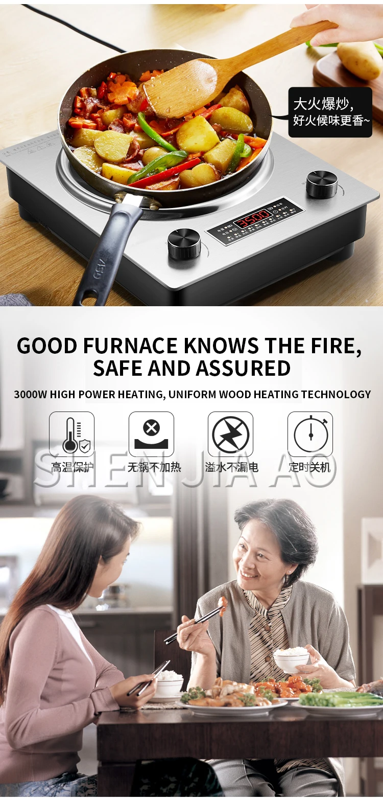 3000W Concave Induction Cooker Household Concave Bottom Cooking Pan Integrated Commercial Battery Stove 220V SFL-05