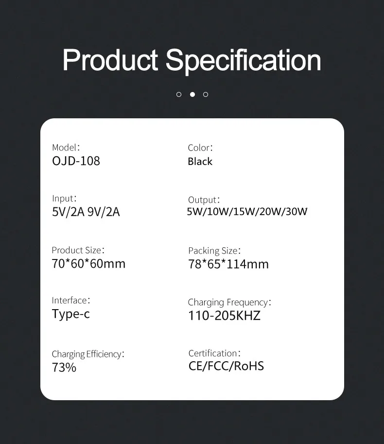 Power:30W/20W/15W/10W/7.5W/5W(30W max will be faster than others)