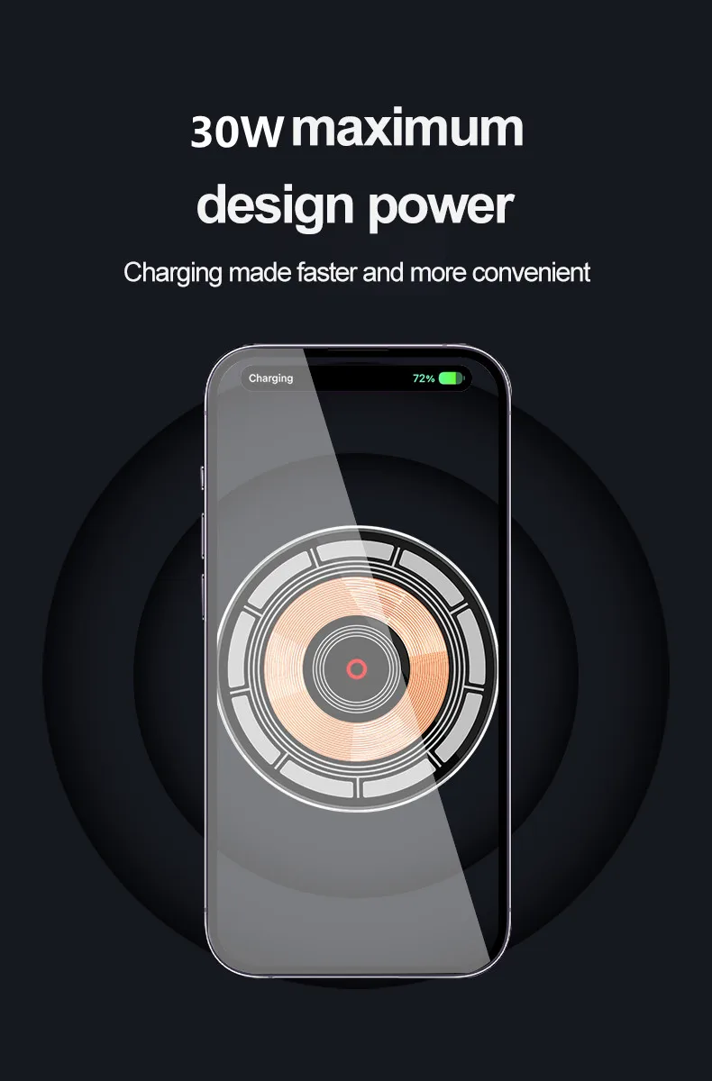 Wireless Fast Charging: Quickly charge for iPhone 12-15 Series with a maximum power of 15W-30W. Also supports 5W/7.5W/10W standard wireless charging.