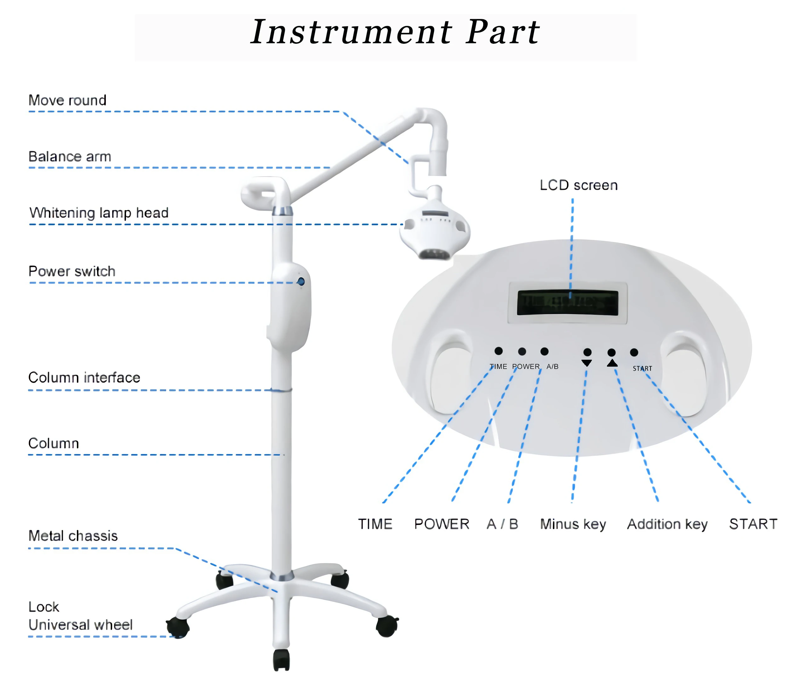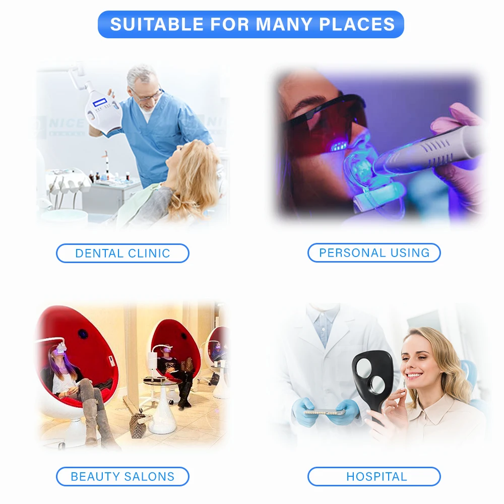 The whitening device needs to be combined with the whitening gel. After the gel is applied, it can be irradiated with blue light to achieve the whitening effect.