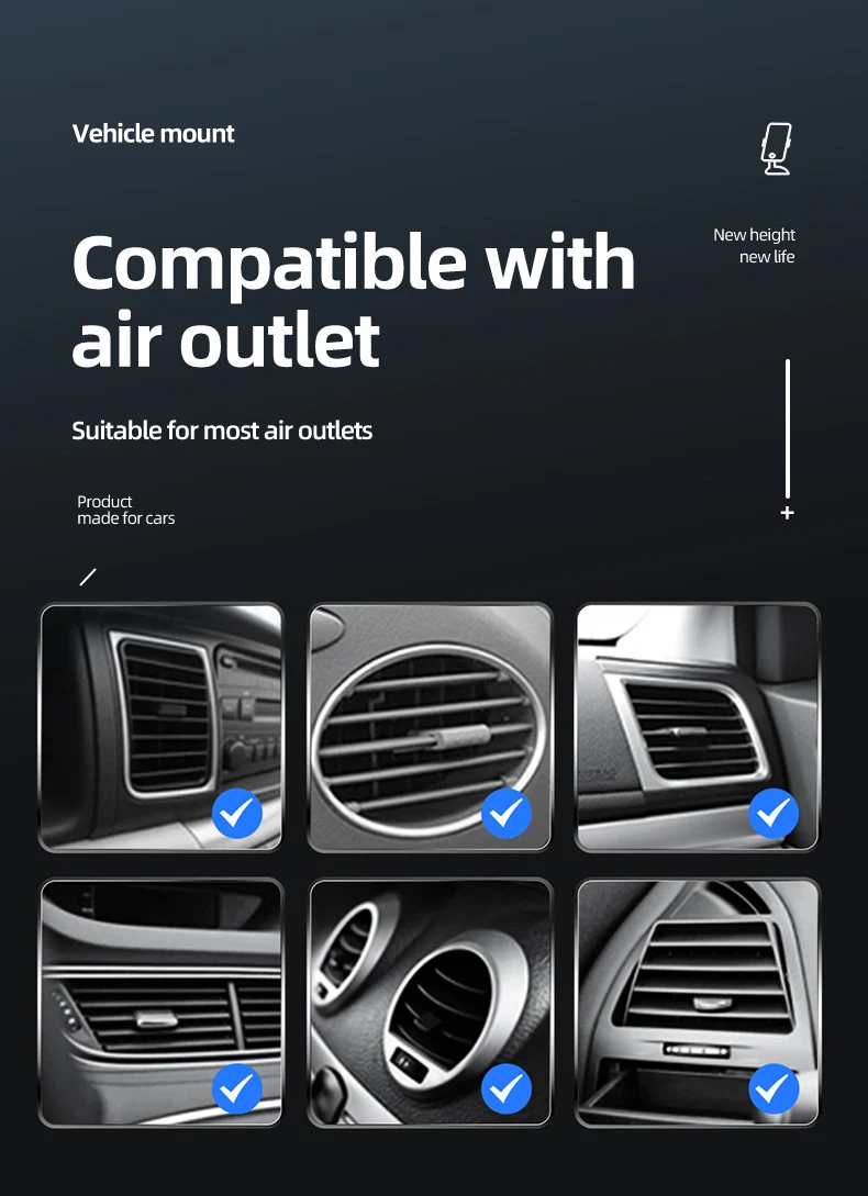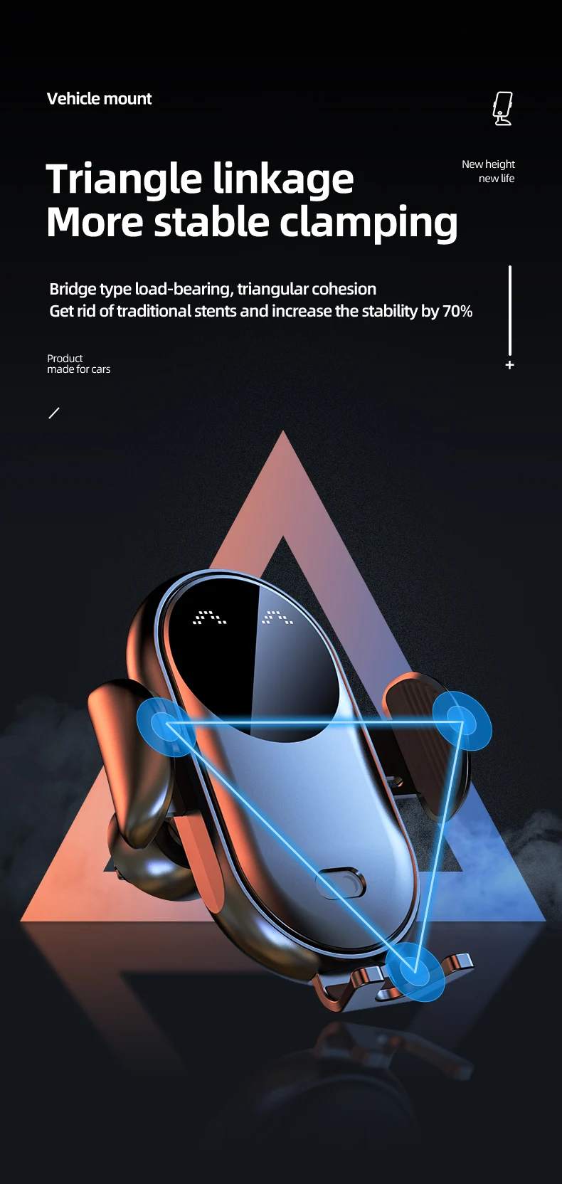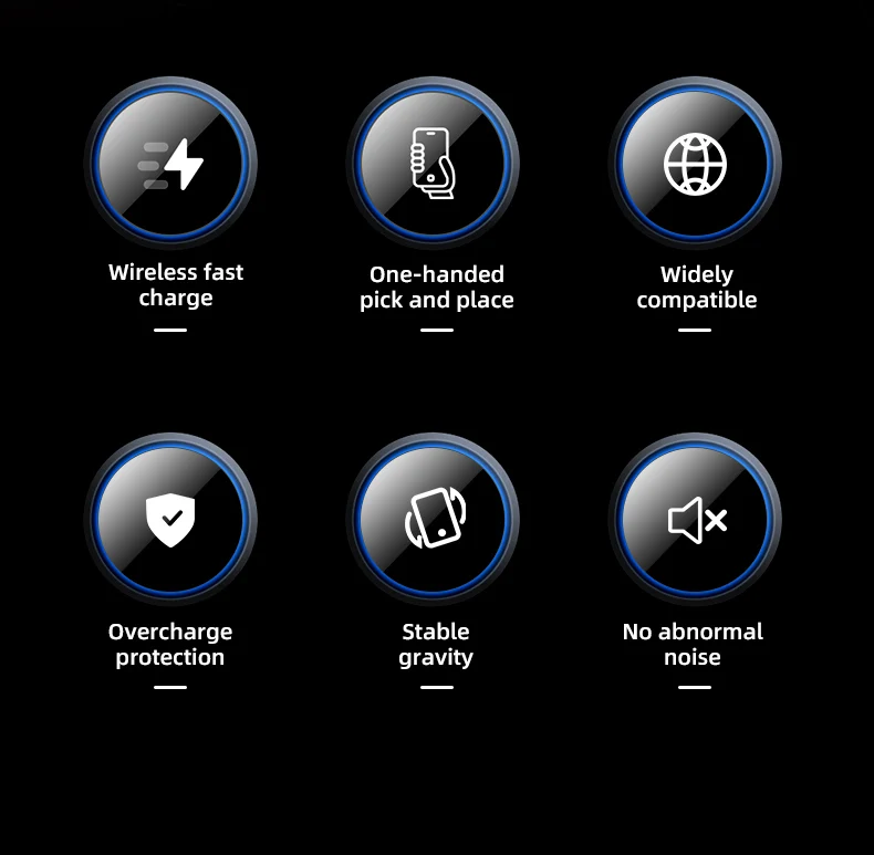 360-degree rotating cradle provides flexible choice of watching your phone or GPS while driving. That means there will be no blocked vision and you can get a perfect viewing angle with the car wireless charger mount.