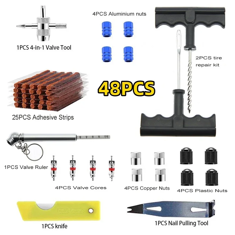 Be the first to review “33/57pcs Auto Tire Repair Set Puncture Repair Tools Car Van Motorcycle Bike Emergency Heavy Duty Tubeless Tire Repair Rivet Set”