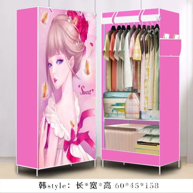3D Non-woven Fabric Panoramic Folding Wardrobe Wardrobe Storage Cabinet Cartoon Wardrobe Bedroom Home Furniture Cute Storage