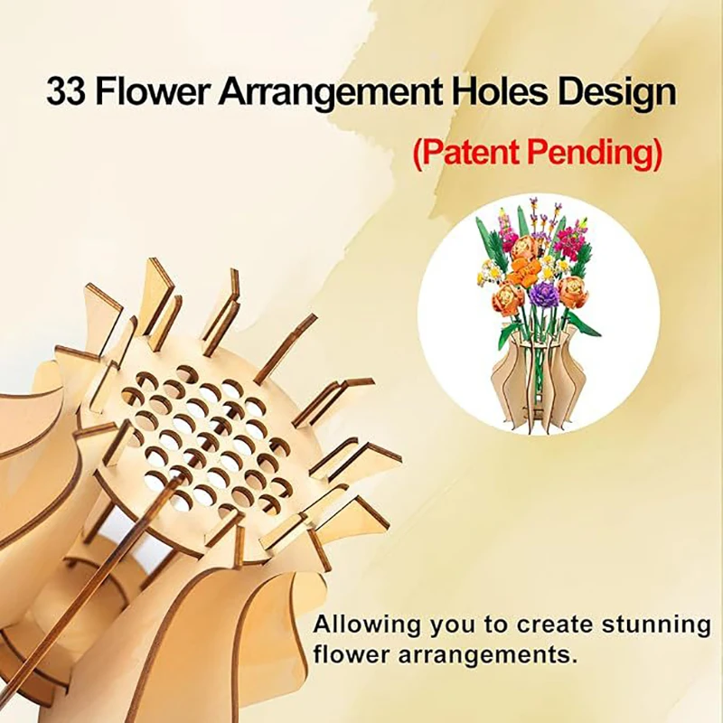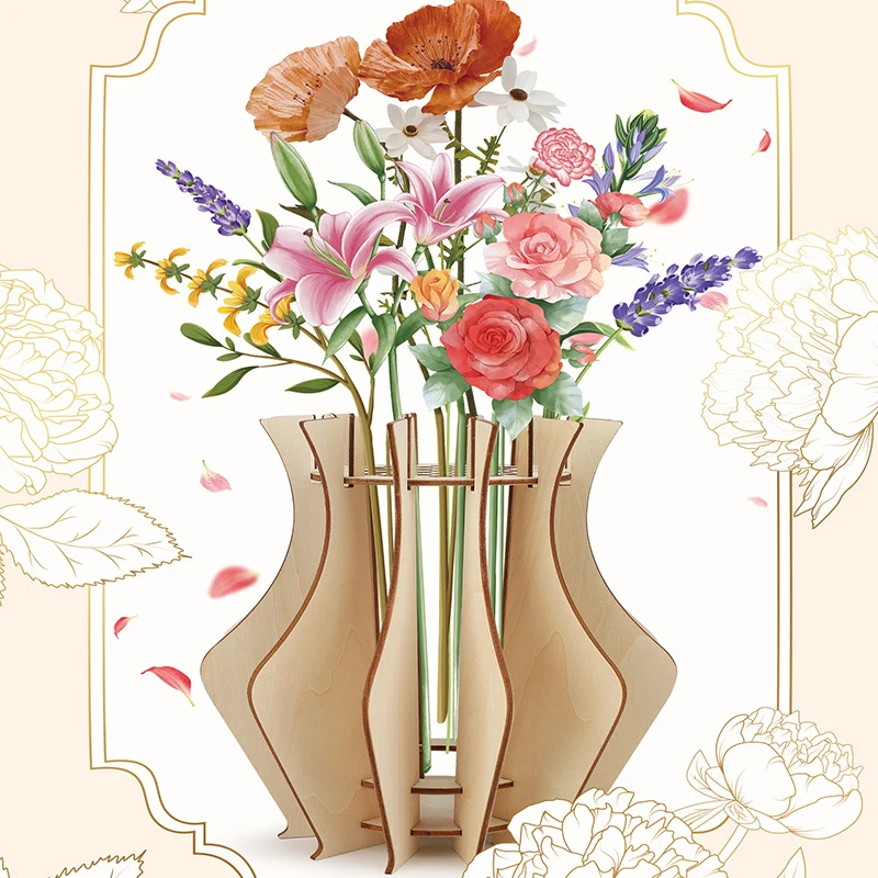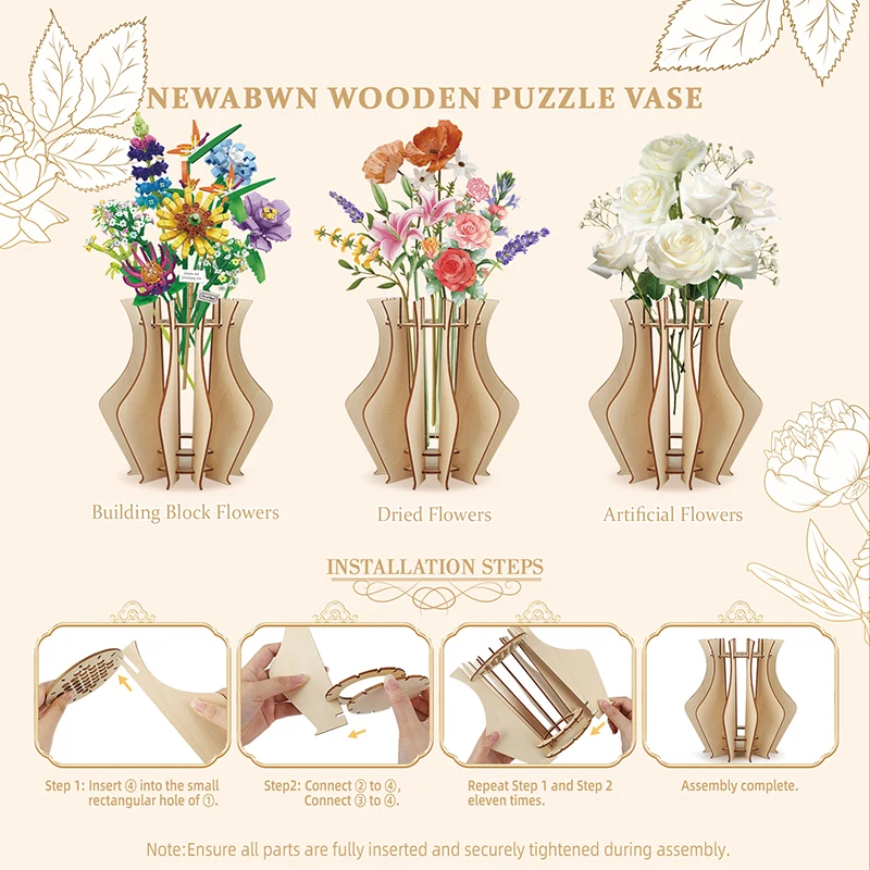 [Unique Design]Elevate your flower display with our handcrafted wooden puzzle vase, designed for flower lovers.