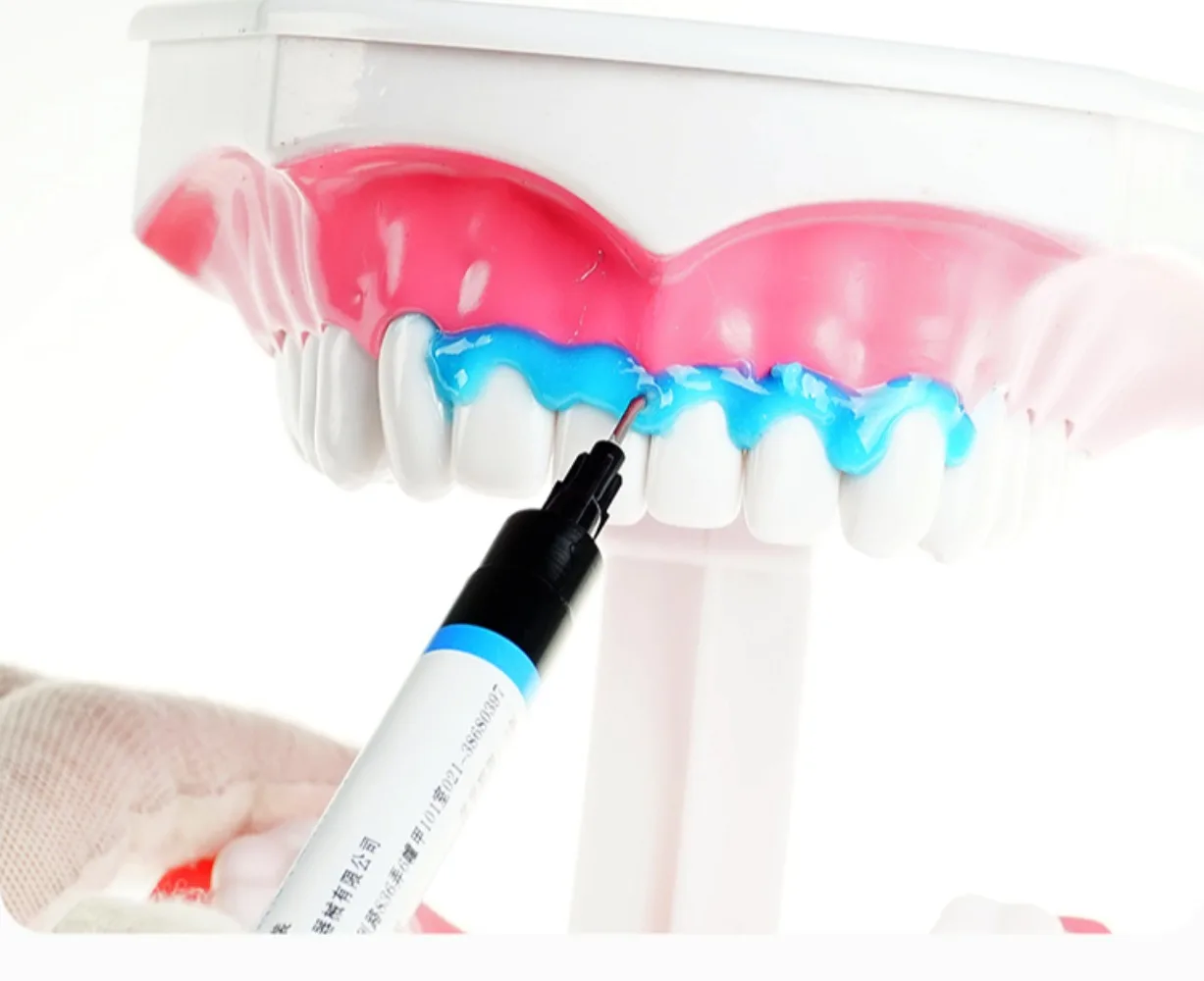 1. After thoroughly absorbing the whitening gel, rinse the teeth thoroughly with an air-water gun and absorb the water. Use a probe or other tool to remove the solidified gingival barrier resin from the surface of the teeth. Usually, most of the resin barrier can be removed at once