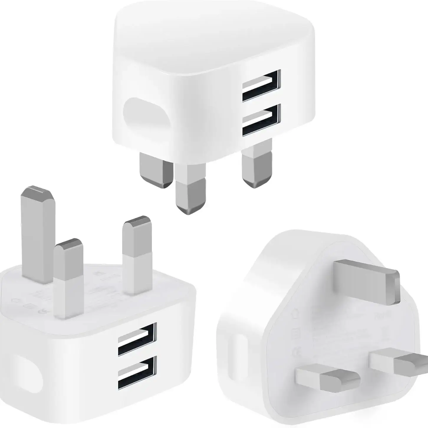 3Pack Dual Port USB Plug UK Adapter 5V 2.1A USB Charger Universal Mobile Phone USB Travel Adapter for iPhone 6/7/8 samsung S23