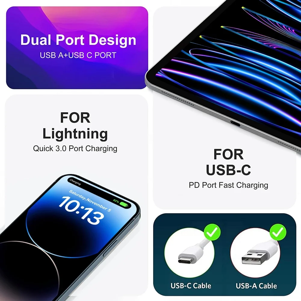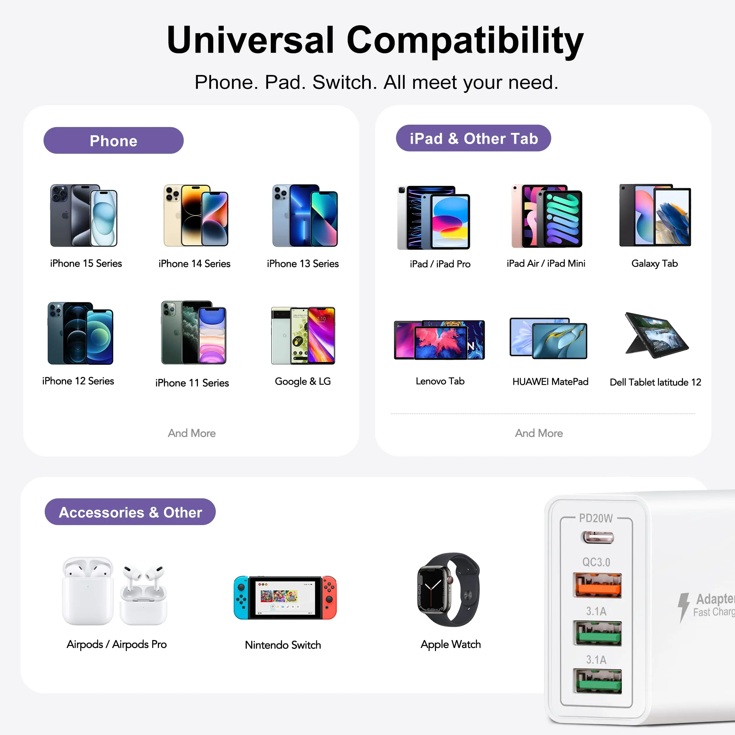 3USB PD Charging Adapter QC3.0 Type C Multi Ports Fast Charger Universal High Speed Charger For iPhone 16 Samsung Huawei Xiaomi