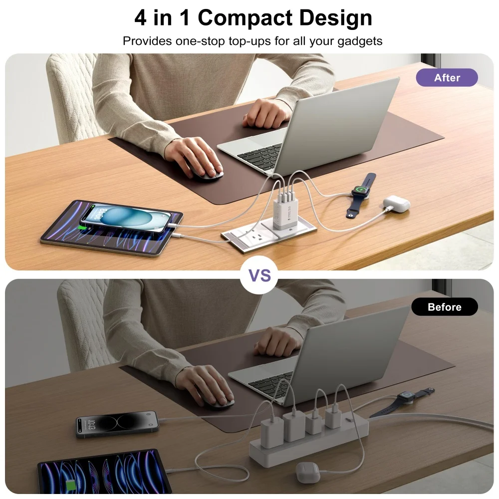 1. 4 in 1 Charging port design enables one charger to solve all charging problems.