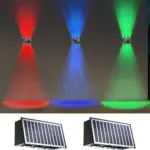 4/6/8 LED Solar Fence Lights RGB Wall Lamp Outdoor Modern Up and Down Lights Waterproof Yard Garage Porch 2 Mode Garden Light