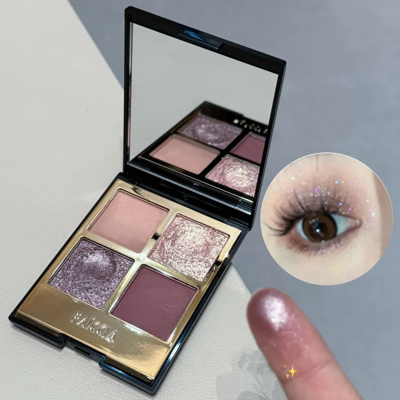 4-Color Shimmer Matte Eyeshadow Palette Smoky Rose Pink Glitter Pigment Eye Shadow Lasting Waterproof Make Up Palette Cosmetics