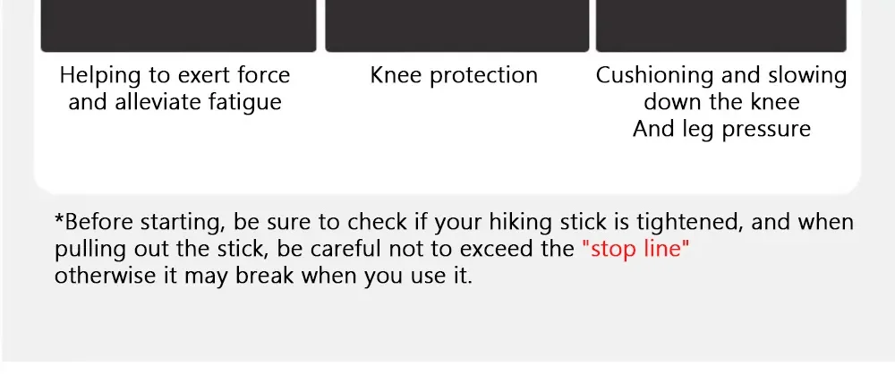 1. Please adjust the length of the trekking poles to suit before use